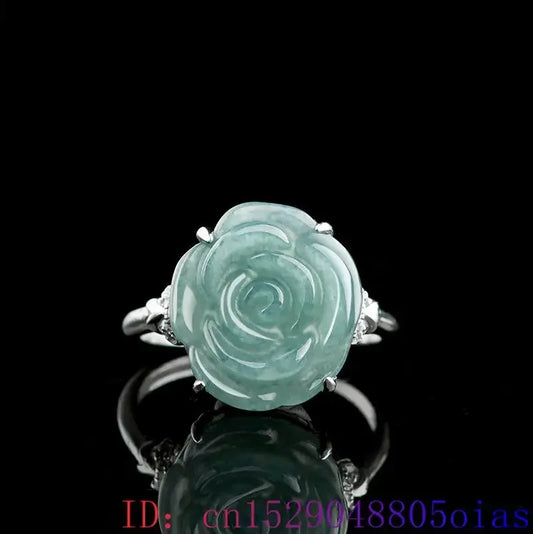 Blue Real Jadeite Rose Jewelry Set Ring Earrings Pendant Necklace 925 Silver Natural Burmese Jade Stone Talismans