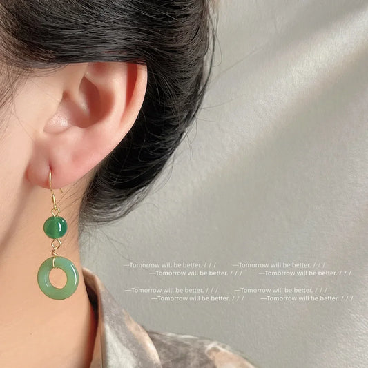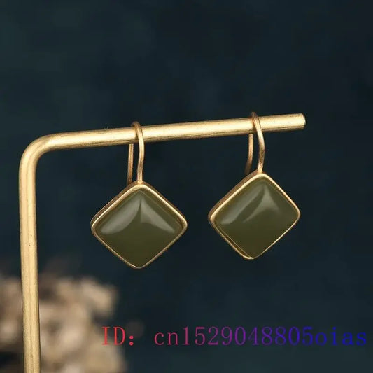 Green Jade Beaded Earrings 925 Silver Accessories Amulets Charms Women Natural Vintage Jewelry Stone Charm Gifts Designer
