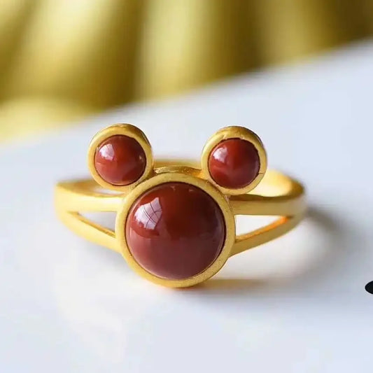 Green Jade Mouse Rings Natural Gemstone Jewelry Gifts Women Carved Adjustable Ring Accessories 925 Silver...