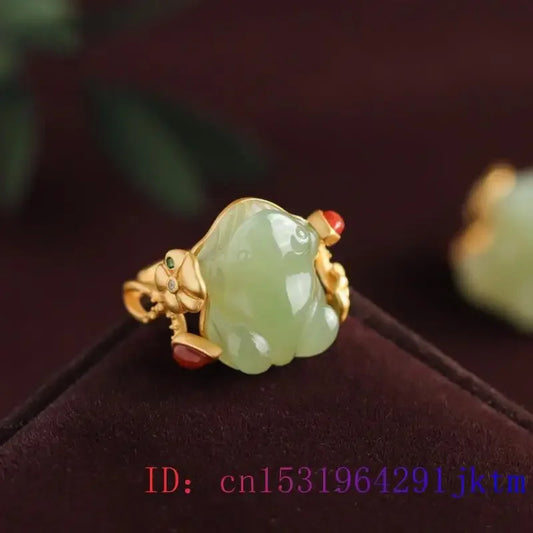 Green Jade Frog Rings Charms Natural Designer Accessories Amulets Talismans Fashion Jewelry Adjustable Ring Women 925 Silver