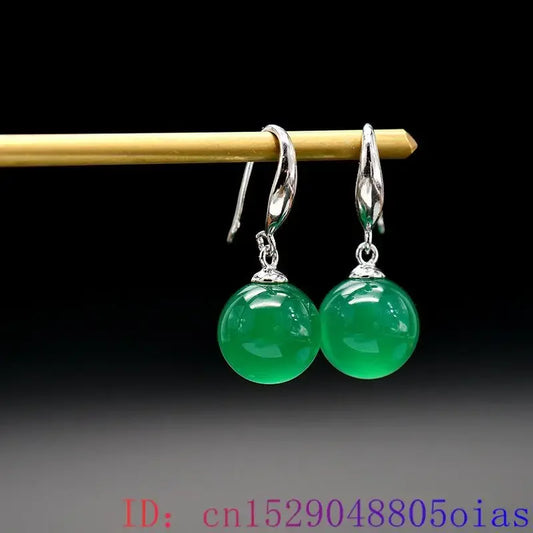 Green Real Jade Bead Earrings 925 Silver Gift Talismans Designer Carved Natural Jewelry Women Fashion Gemstone Gifts Stone