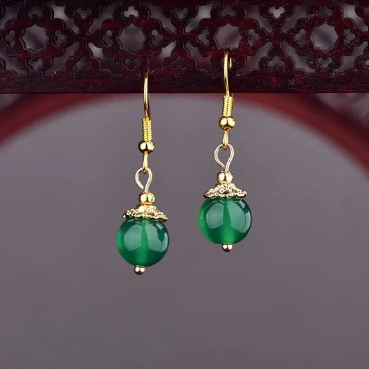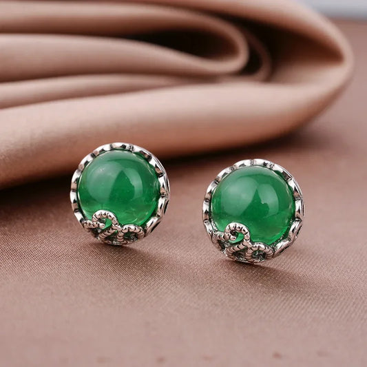 Green Jade Ear studs Crystal Chalcedony Jewelry Gemstone Fashion Zircon Women 925 Silver Charm Amulet Retro Earrings Natural