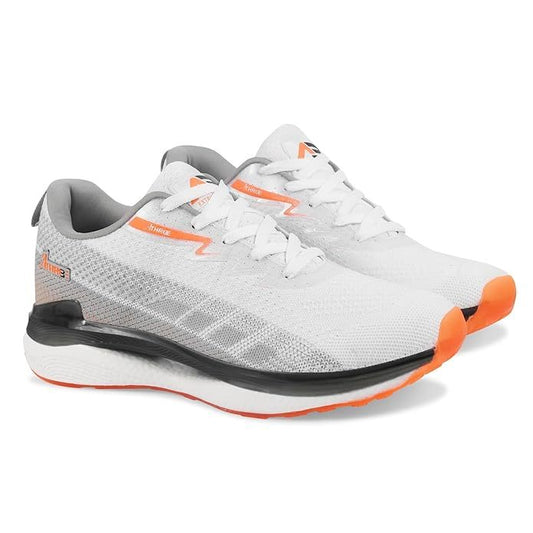 Men's White & Orange Lightweight Mesh Running Shoes – Breathable