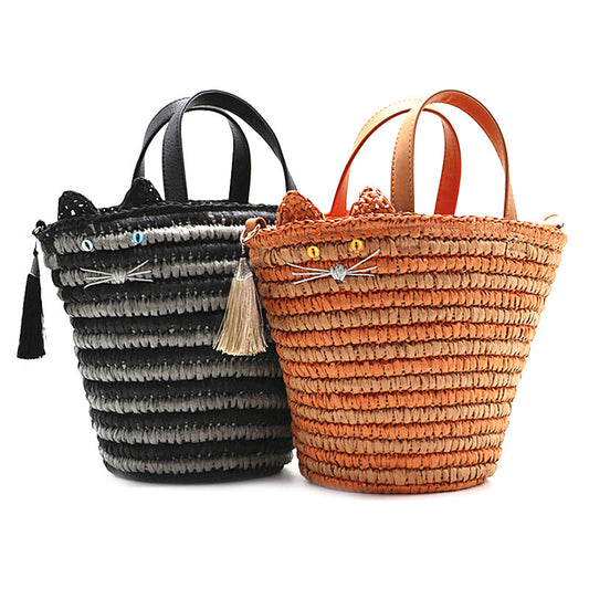 🐾 From seaside strolls to sunny cafés – fringed fun meets feline charmA playful straw...