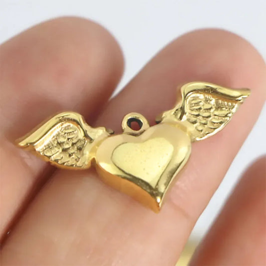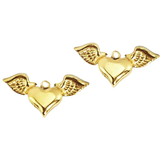 WZNB 2Pcs Gold Plated Angel Winged Charms Heart Stainless Steel Pendant for Jewelry Making Diy Earring Necklace Accessories