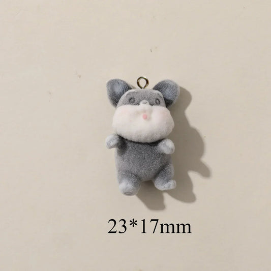 30Pcs 3D Cute Flocking Dog Charms Cartoon Animal Dog Resin Pendant Earring Keychain Bag Accessories for DIY Crafts Jewelry Make