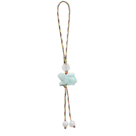 Customization Natural Emerald Chinese Rabbit DIY Phone Chain Key Ring Jewellery Fashion Accessories Hand-Carved Man Woman Amulet
