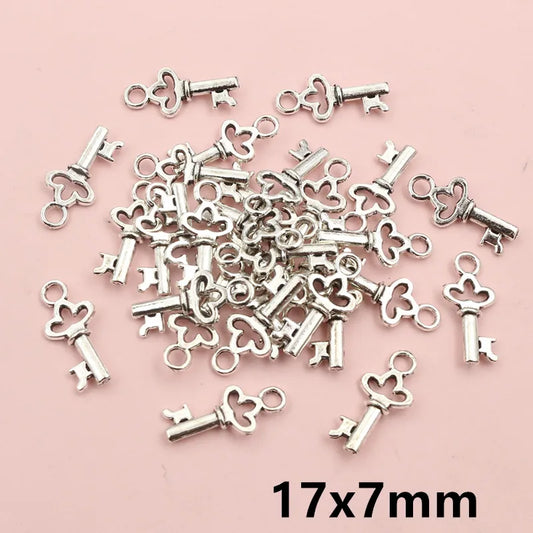 50pcs Vintage Small Key Charms Antique Silver Plated Alloy Metal Handmade Charms Pendant DIY Jewelry Making Accessories Findings