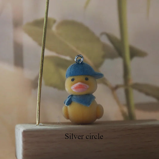 30Pcs 3D Cute Flocked Duck Charms Cartoon Animal Duck Resin Pendant Earrings Keychains Accessories for DIY Crafts Jewelry Make