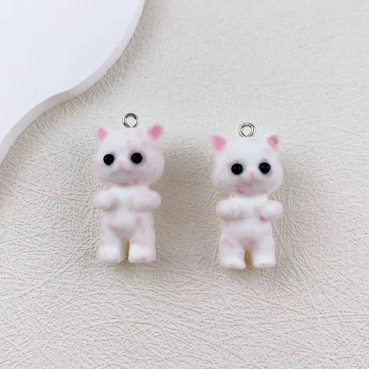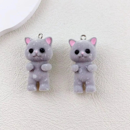30pcs/lot Flocked Cat Charms Cartoon Animals Resin Pendant for Jewelry Making Diy Earring Necklace Keychain Accessories