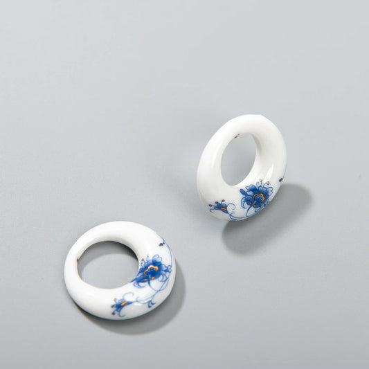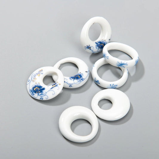Vintage Floral Ceramic Pendant Round Ring Design Accessory Hand-painted Exquisite Stylish Vintage Style Floral Design