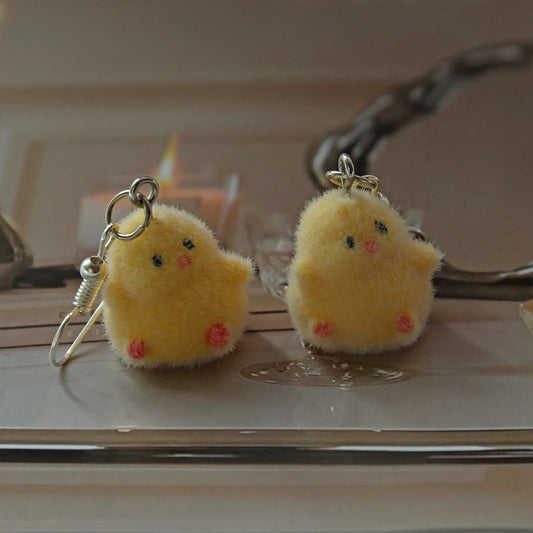 3D Cute Chick Flocking Charms Cartoon Animal Resin Pendant Earrings Keychain Accessories for DIY Crafts Jewelry Make