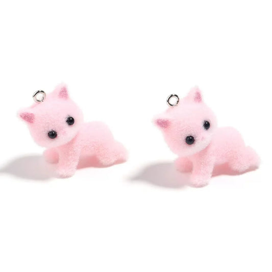 30Pcs/lot 3D Fluffy Flocking Animal crawl Cat Pendant for Jewelry Making Diy Earrings Keychain Necklace Accessories