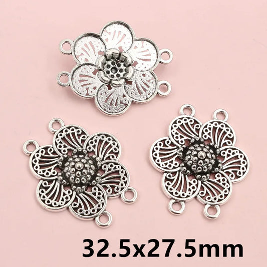 10pcs Antique Silver Color Vintage Flower Connector Charms Pendant DIY Jewelry Making Accessories Findings for Necklace Bracelet