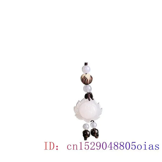 Jade Lotus Keychain Luxury Keychains Jewelry Chalcedony Key chain Phone Charm Car Accessories Fashion Gift Agate key holder