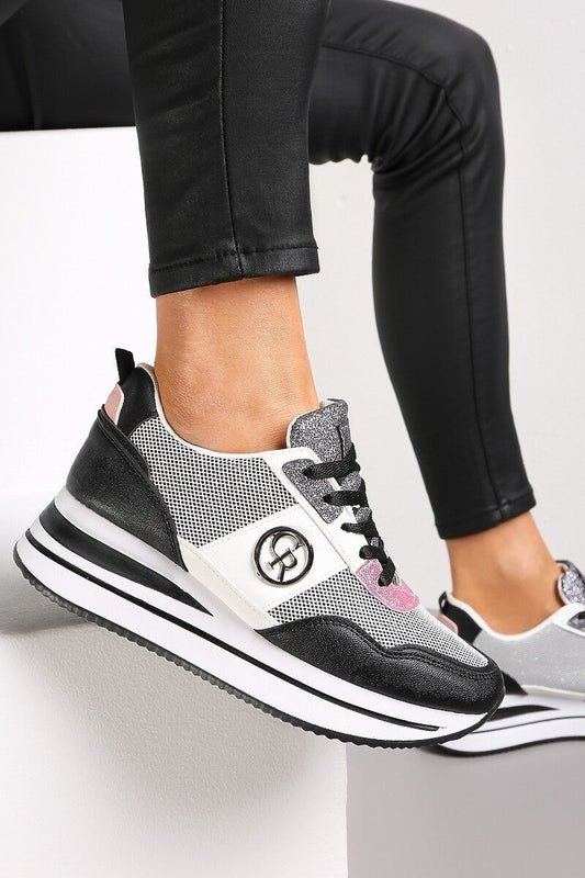 Fashion sneakers in multicolor combination, 60010, black.