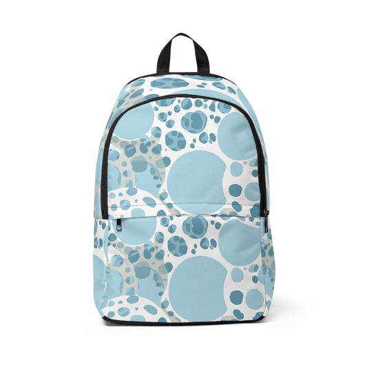 Fashion Backpack Waterproof Blue And White Circular Spotted Illustration. This fashion-forward backpack is crafted with...