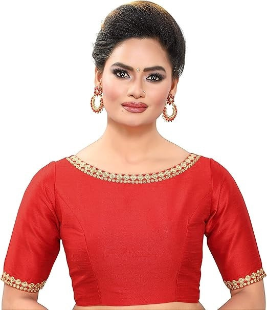 This is Madhu Fashion's New Banaras Brocade Readymade Saree Blouse. It is an Elbow Length...