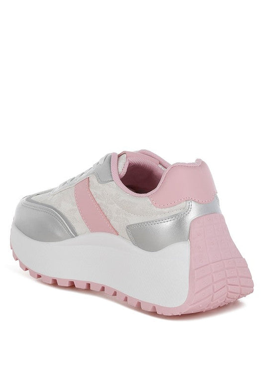 Sliver platform sneakers with lace-up details that are comfortable for your journey. Casual Walking Sneakers...