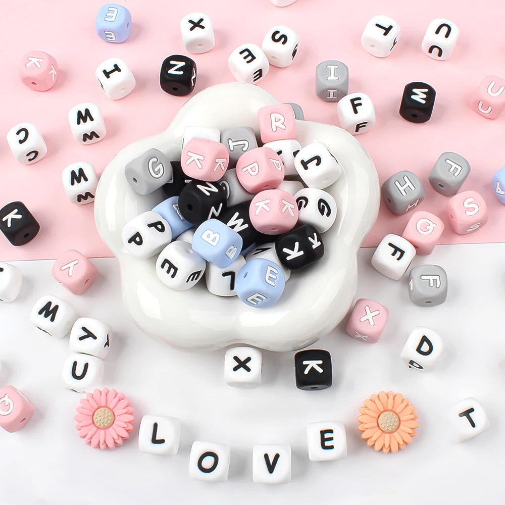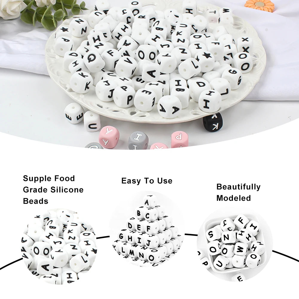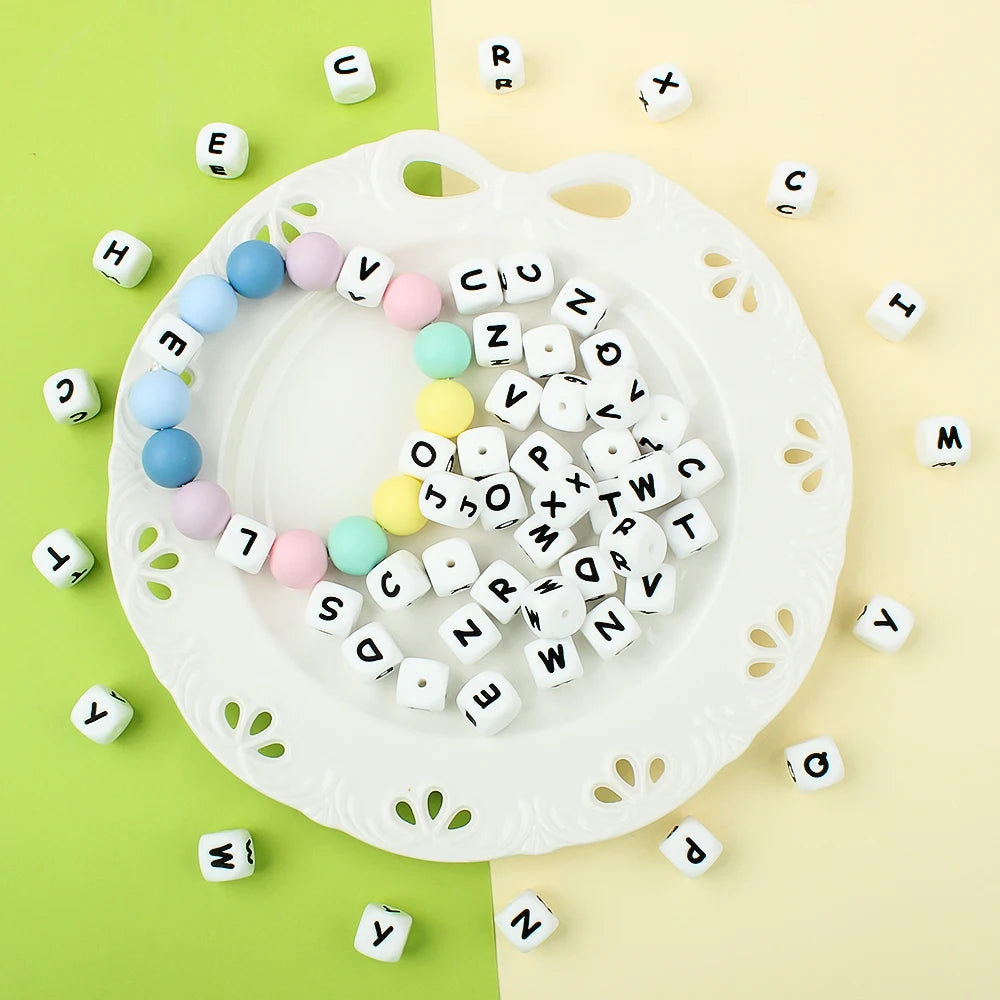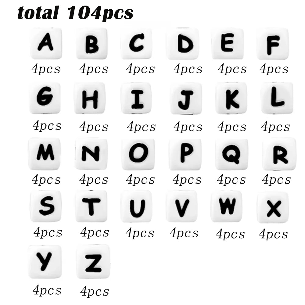 104Pcs 12MM Silicone Beads English letter Bulk Beads For Jewelry Making DIY Beaded Pen Necklaces Jewellery Accessories
