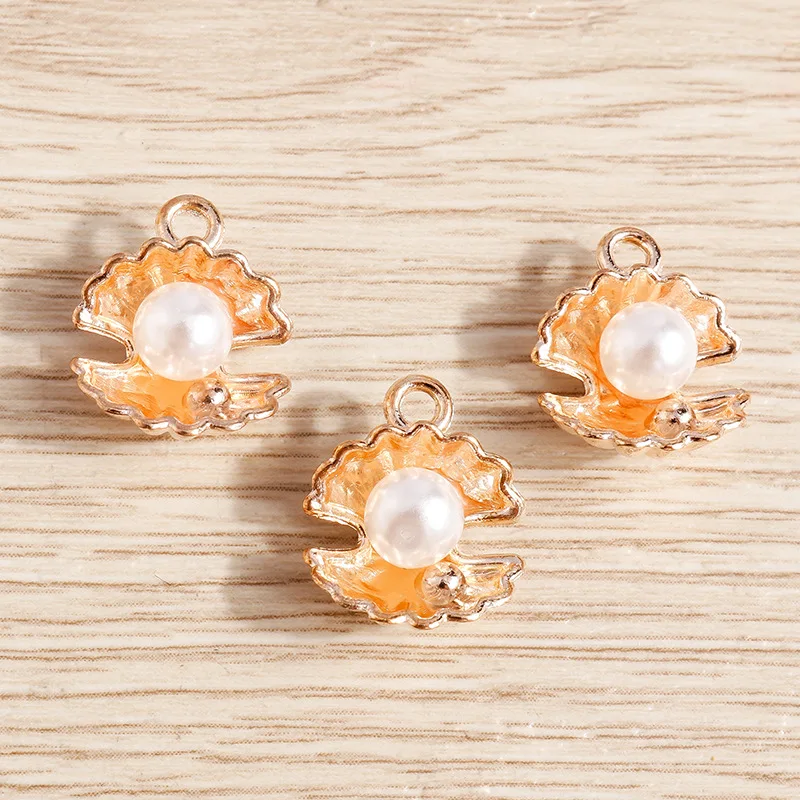 10Pcs 13x15mm Gold Fashion Seashell Pearl Pendant For DIY Handmade Necklace Bracelet Jewelry Making Accessories Wholesale