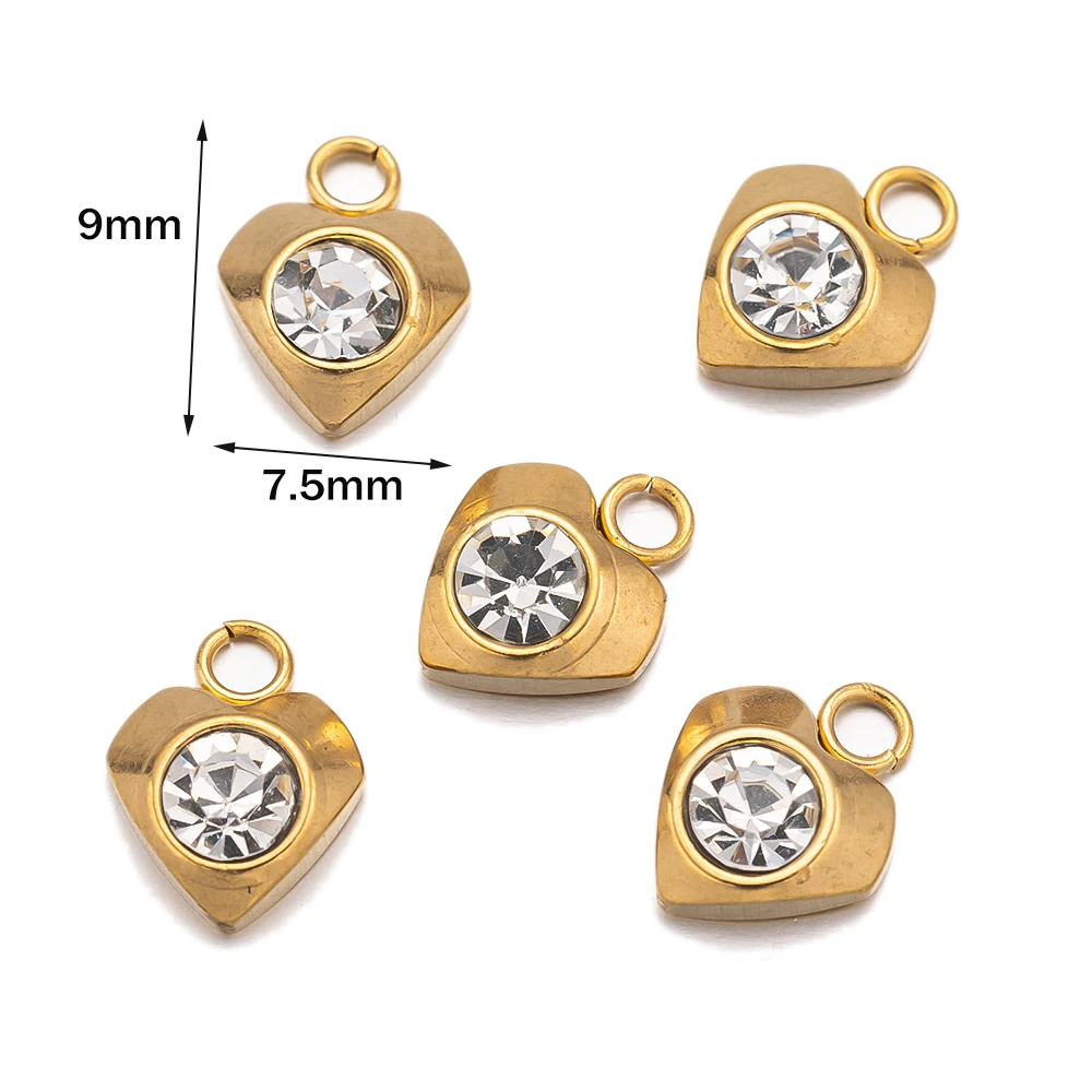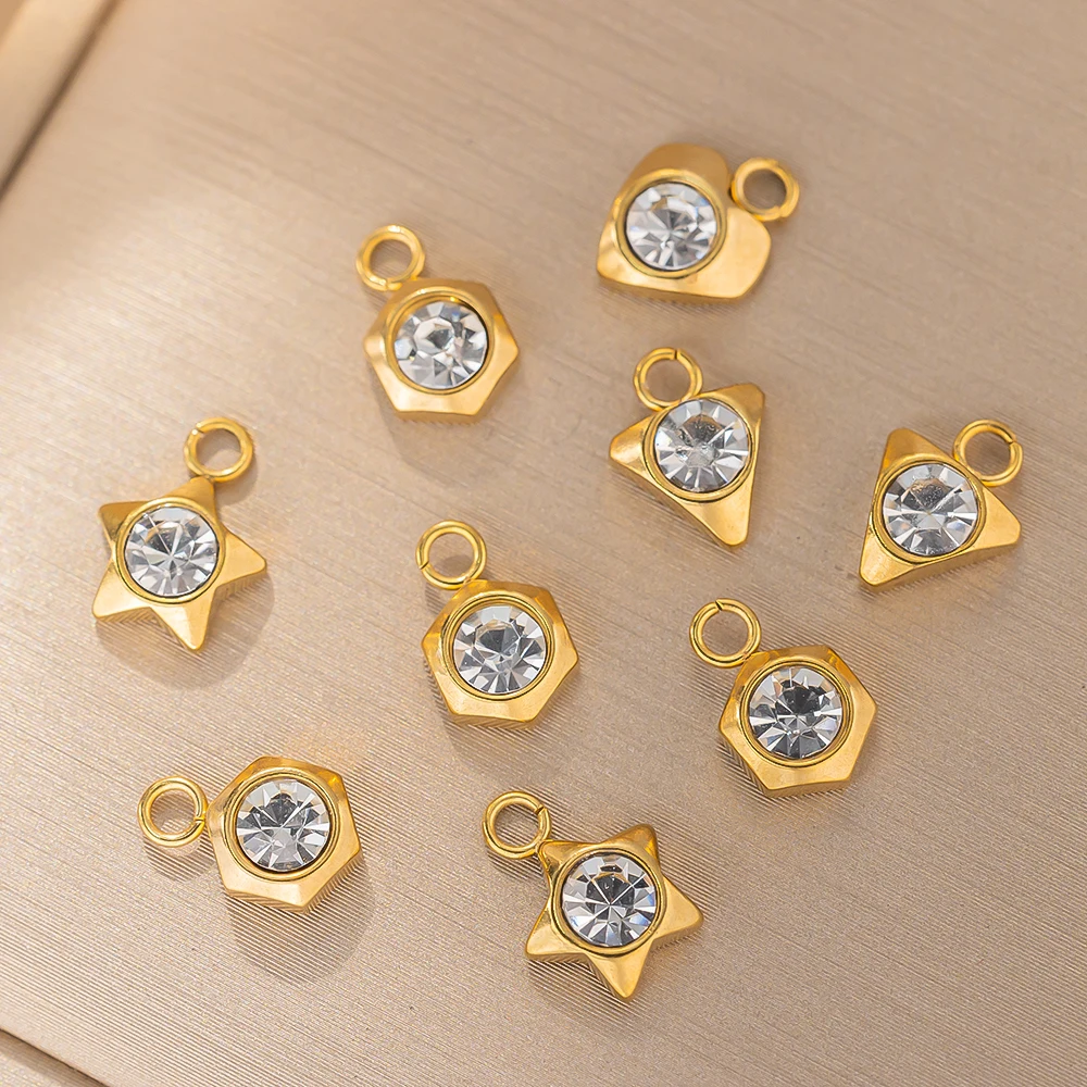 10pcs Gold Stainless Steel Crystal Rhinestone Zircon Heart Star Charms for DIY Pendant Necklace Bracelet Jewelry Making No Fade