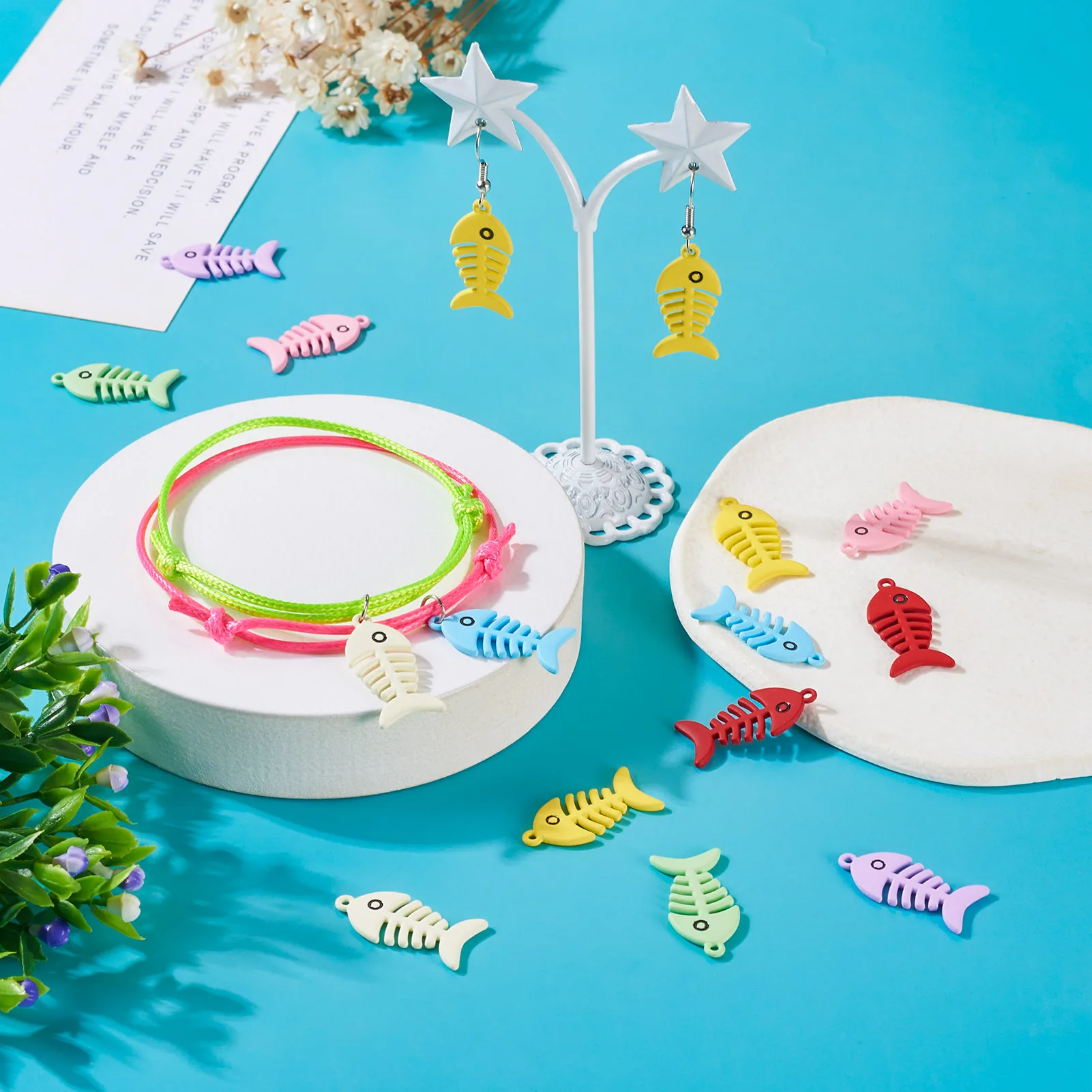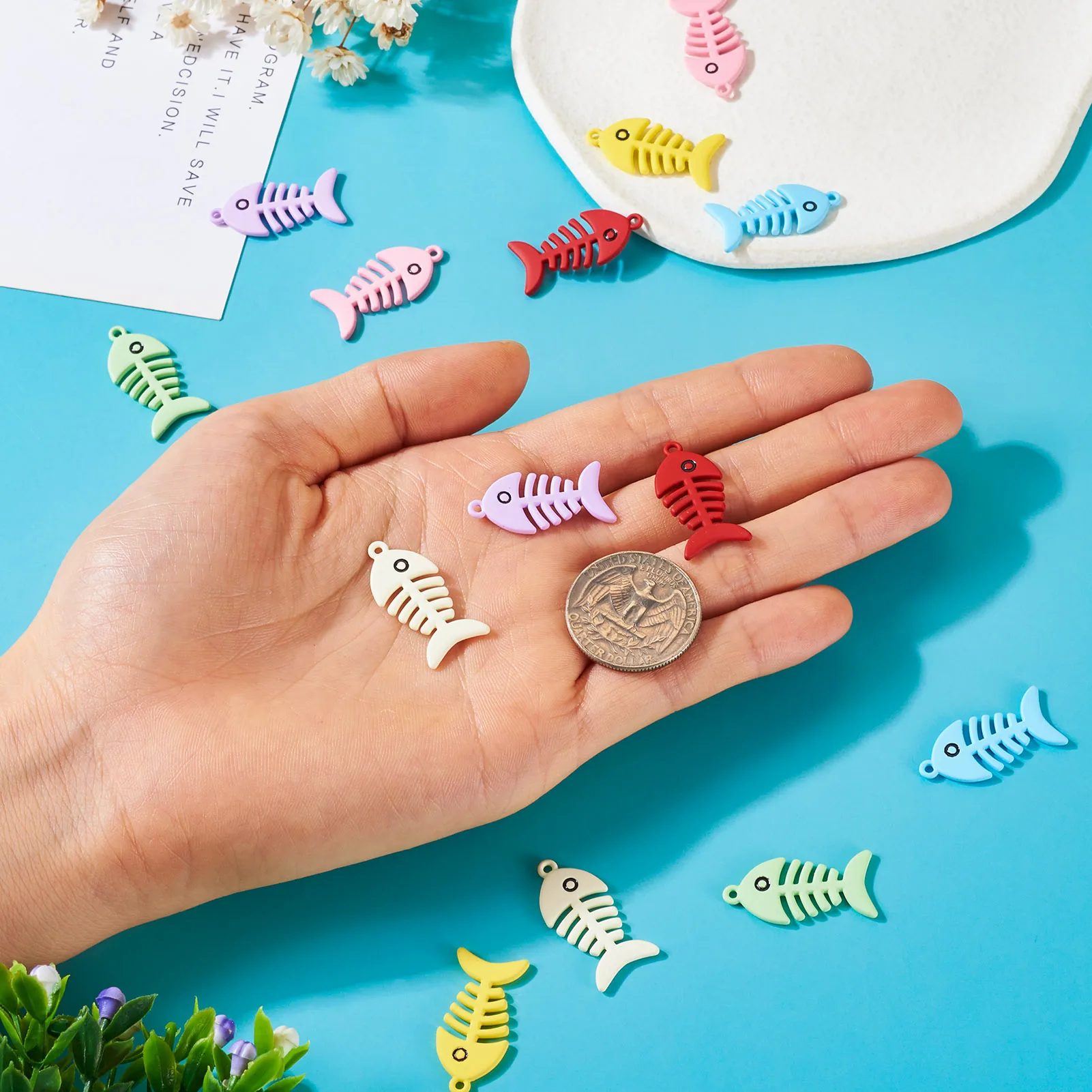 14Pcs 7 Colors Spray Painted Alloy Pendants, Fishbone Shape Charms, Mixed Color<P>Size: