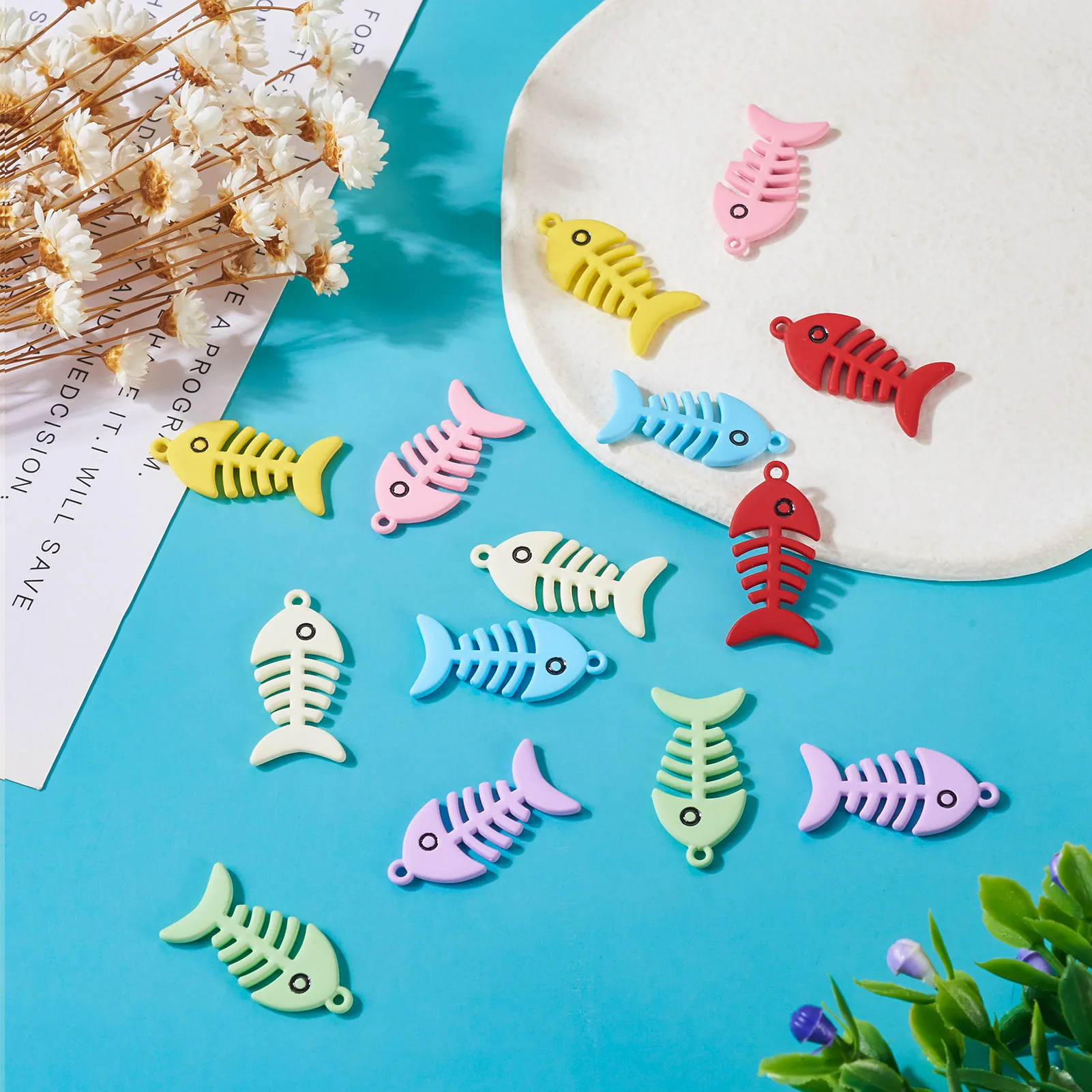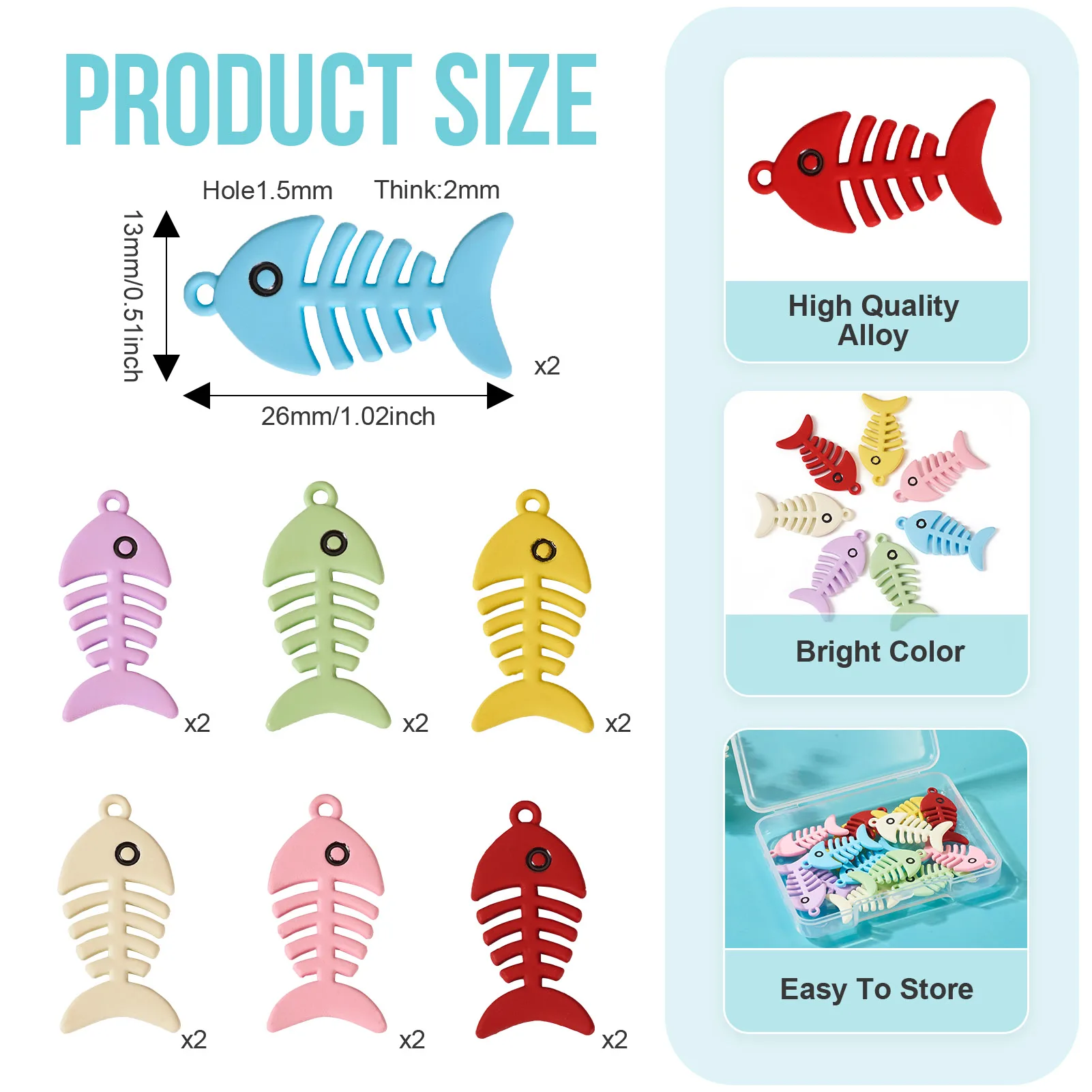14Pcs Cute Fishbone Alloy Floating Pendants Charms for DIY Earrings Necklace Keychain Decorate Accessories