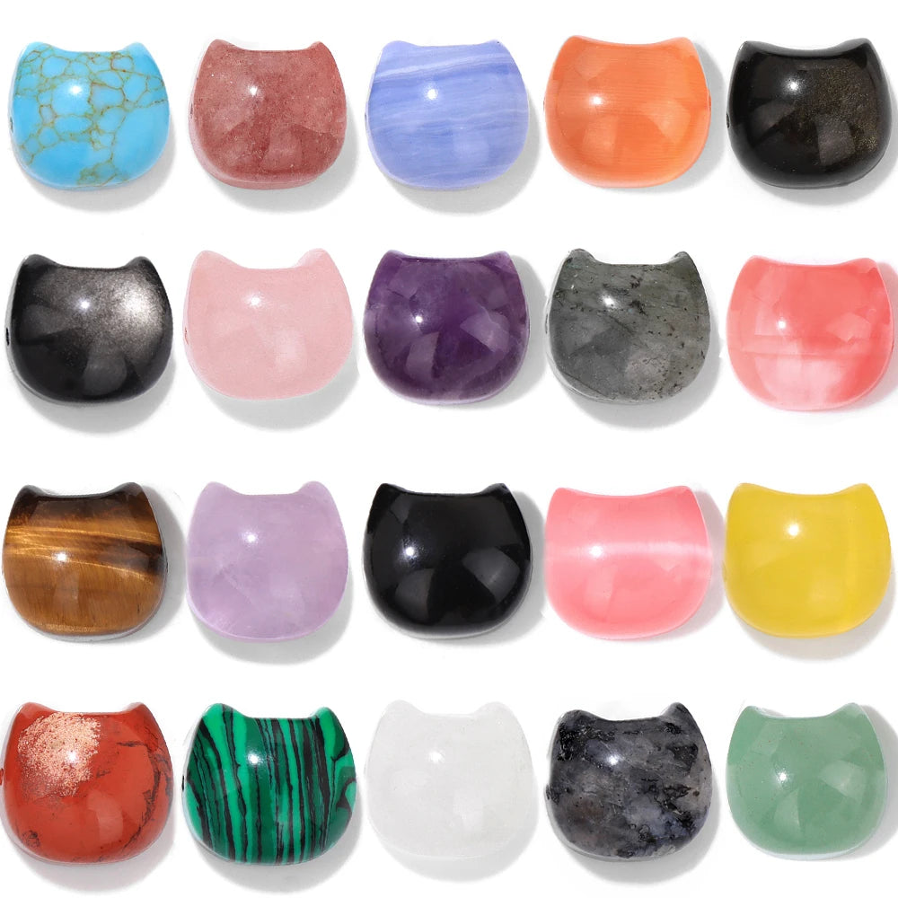 14x16mm Natural Stone Cat Shape Carved Beads Multicolor Gem Quartzs Beads For Jewelry Making DIY Bracelet Necklace Accessories