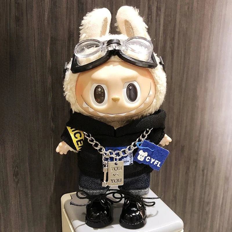 17cm Labubu Clothes Cool Mini Plush Hoodie Idol Dolls Jumpsuit Fashion Clothing for Korea Kpop Exo Fans Overalls Accessories
