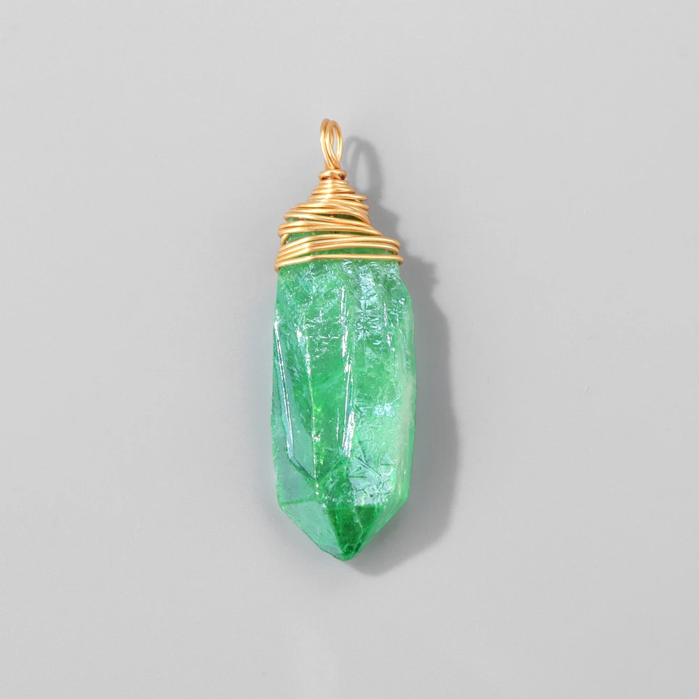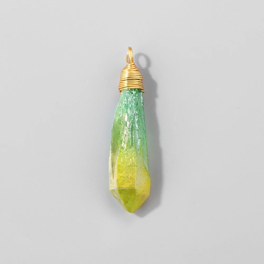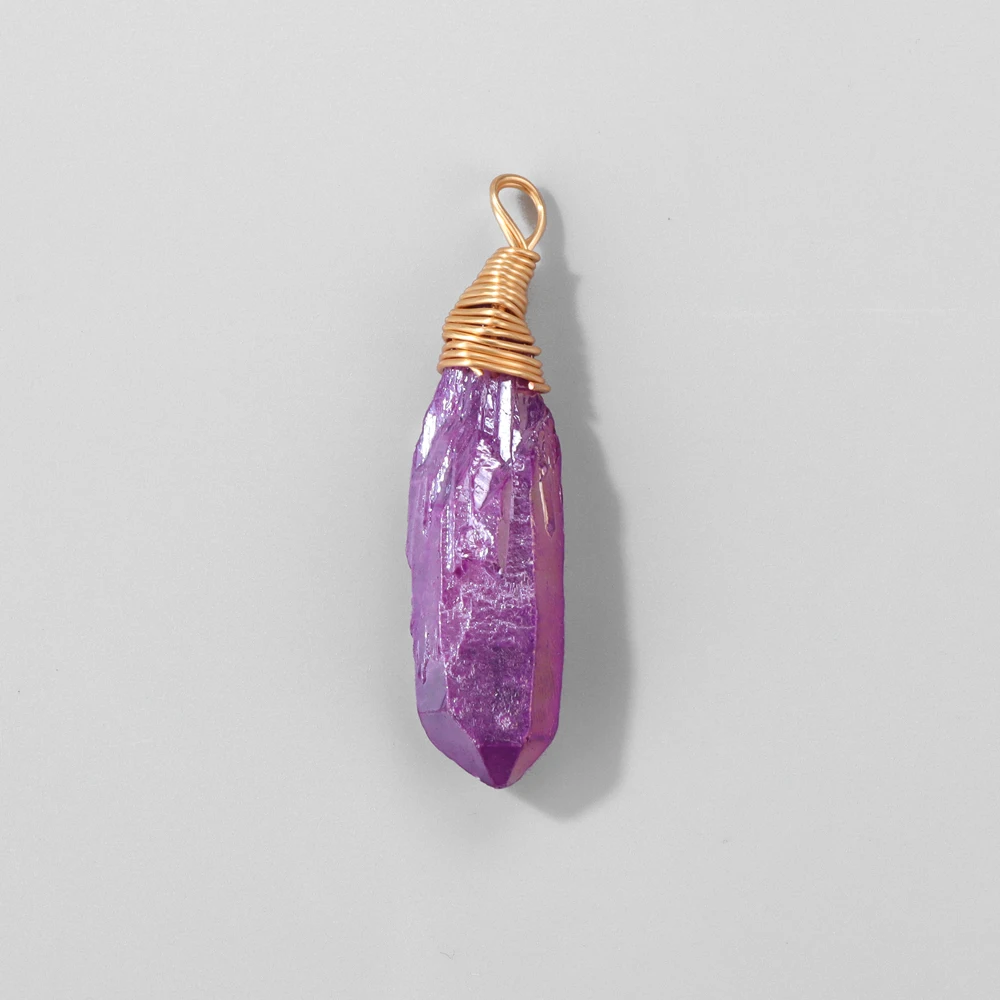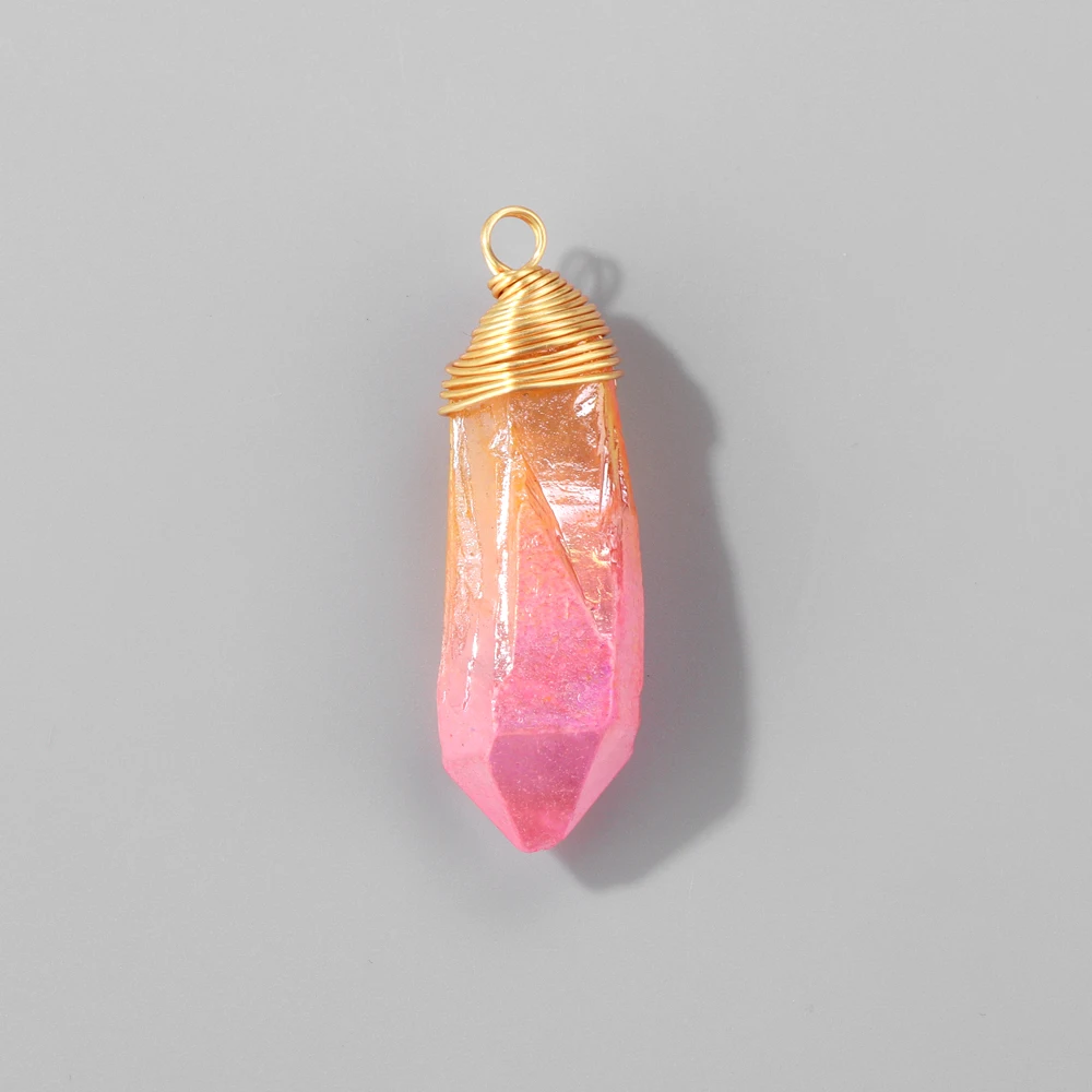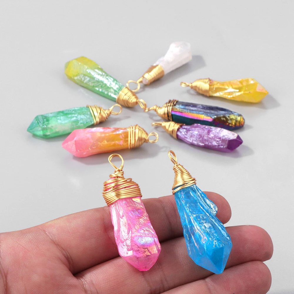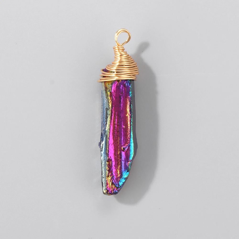 1PC Random Electroplated Quartz Point Pendant Irregular Shape Wire Wrapped Crystal Charms DIY Necklace Earring Jewelry Accessory