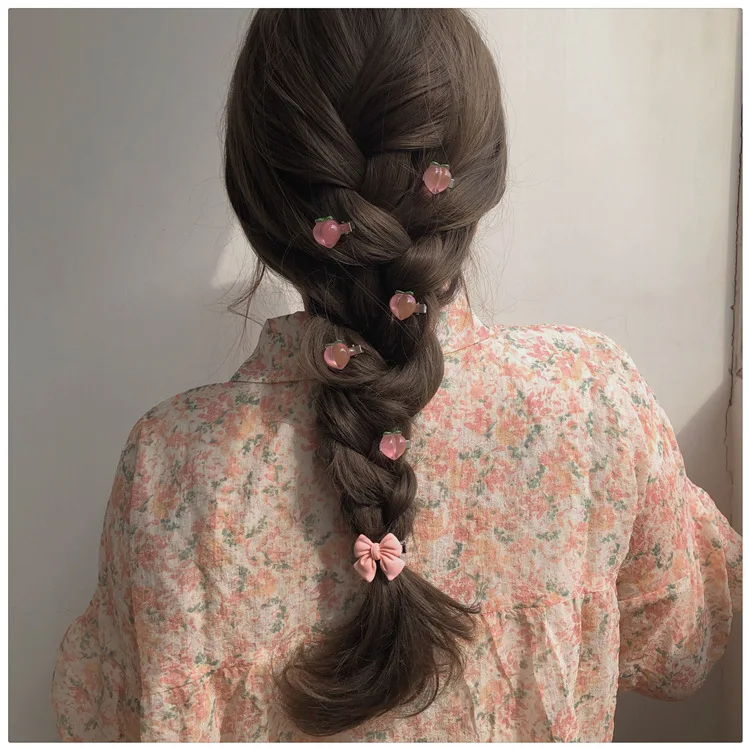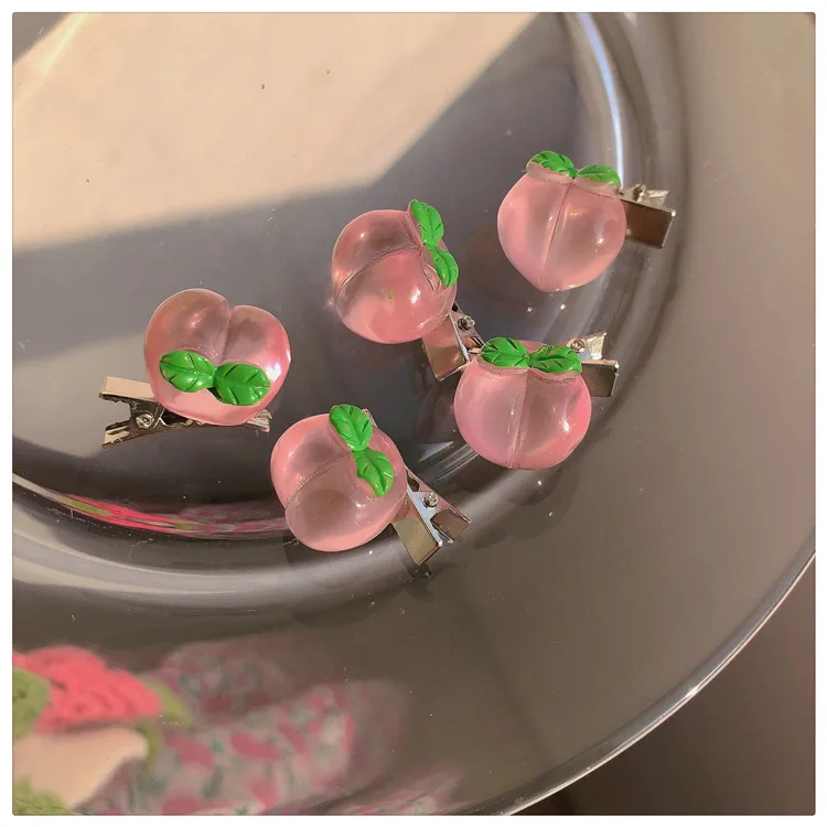 1PCS Pink Girl Cute Series Honey Peach Rose Flower Hair Clip Hair Card Sweet Wind Camellia Lace Bow Headpiece Hair Accessories