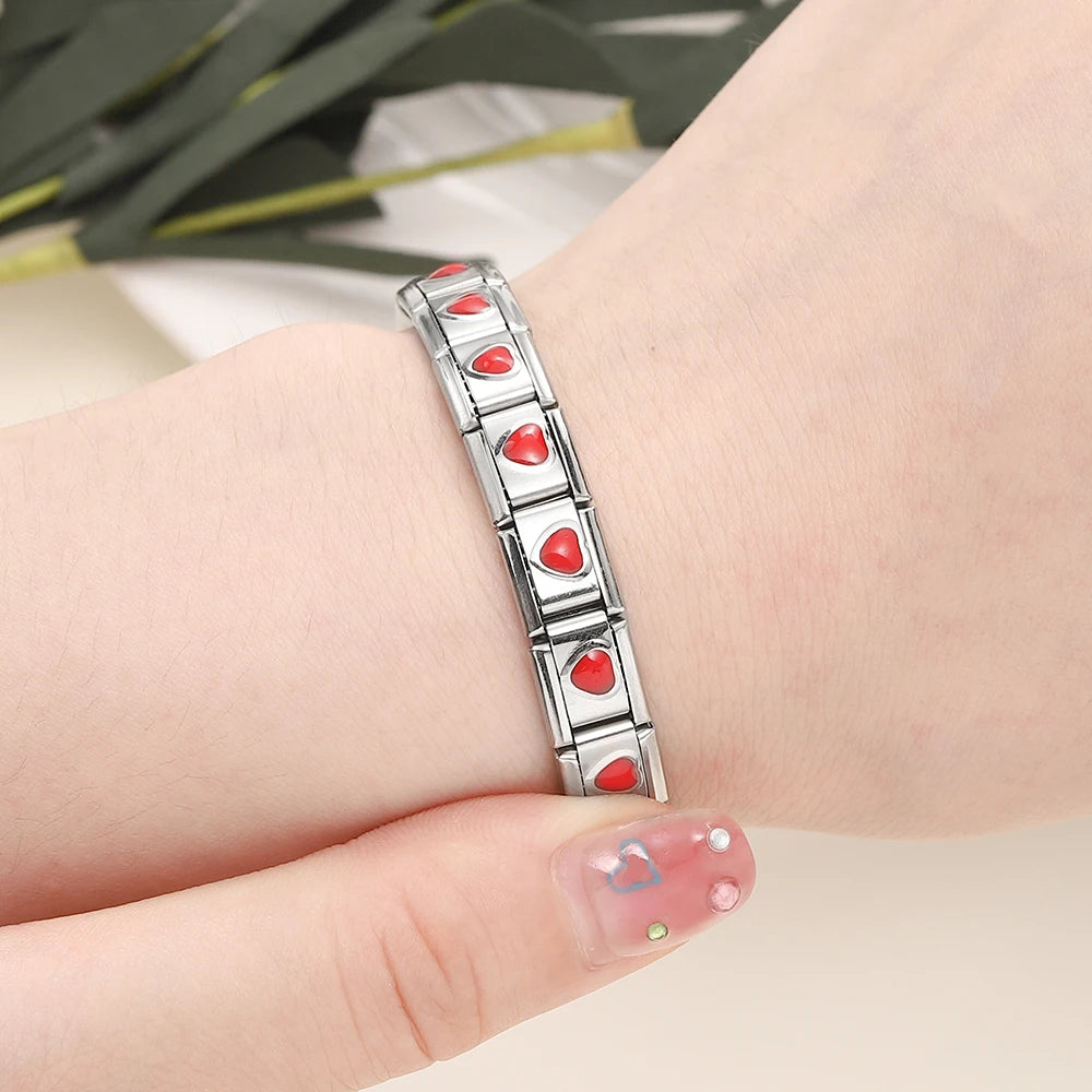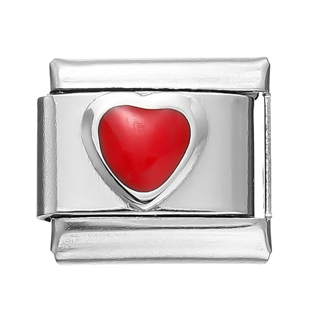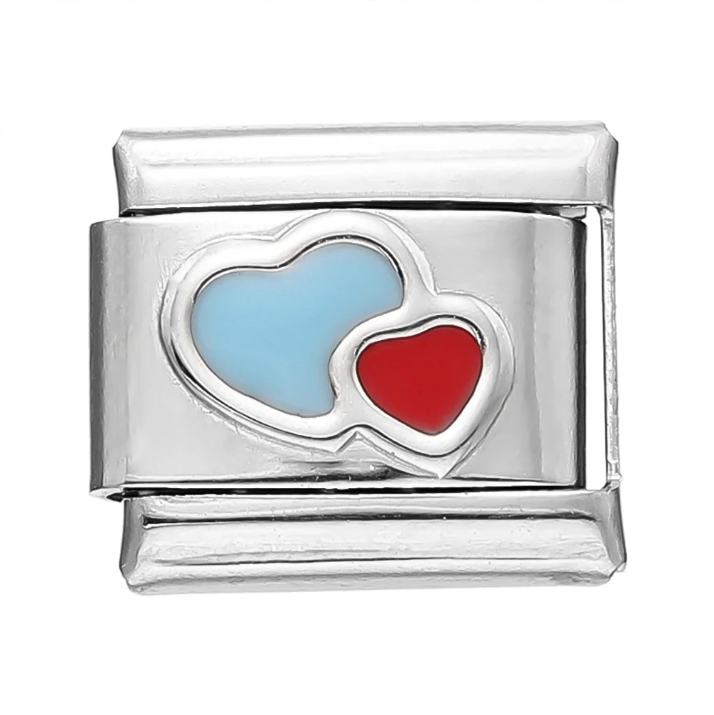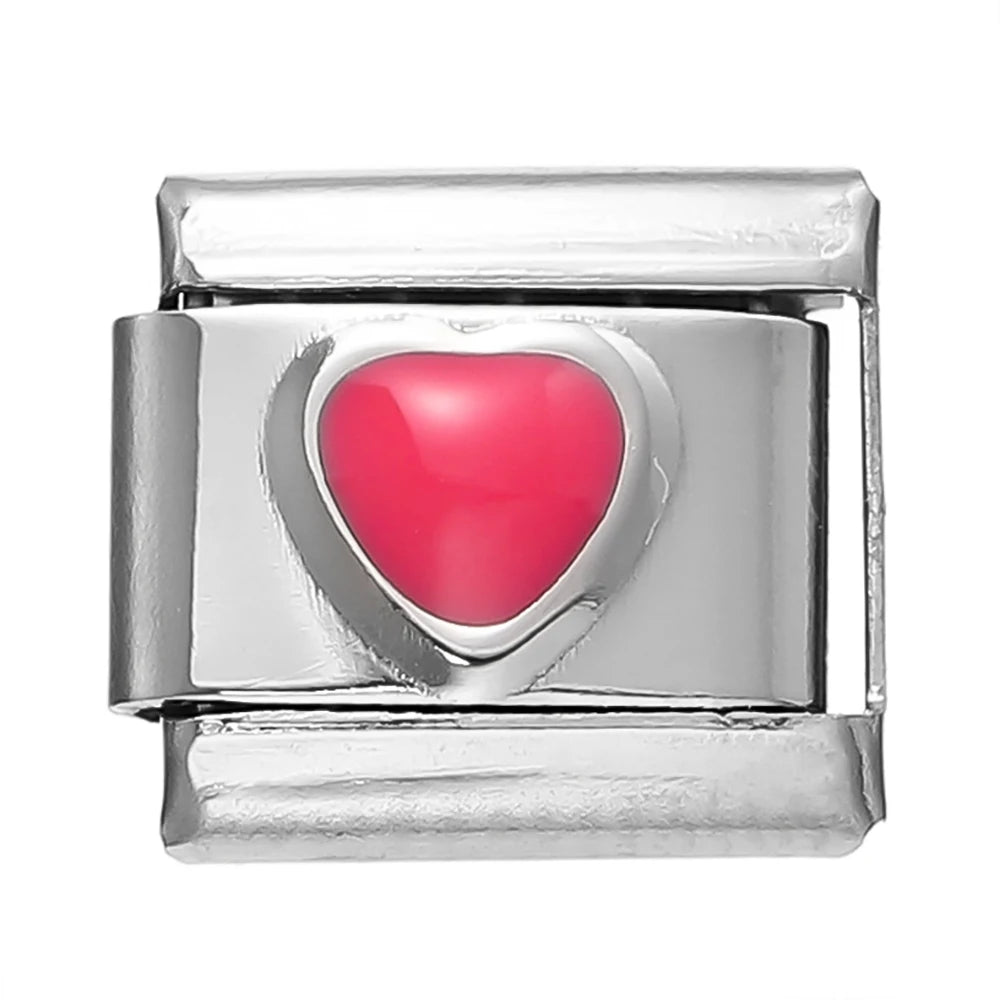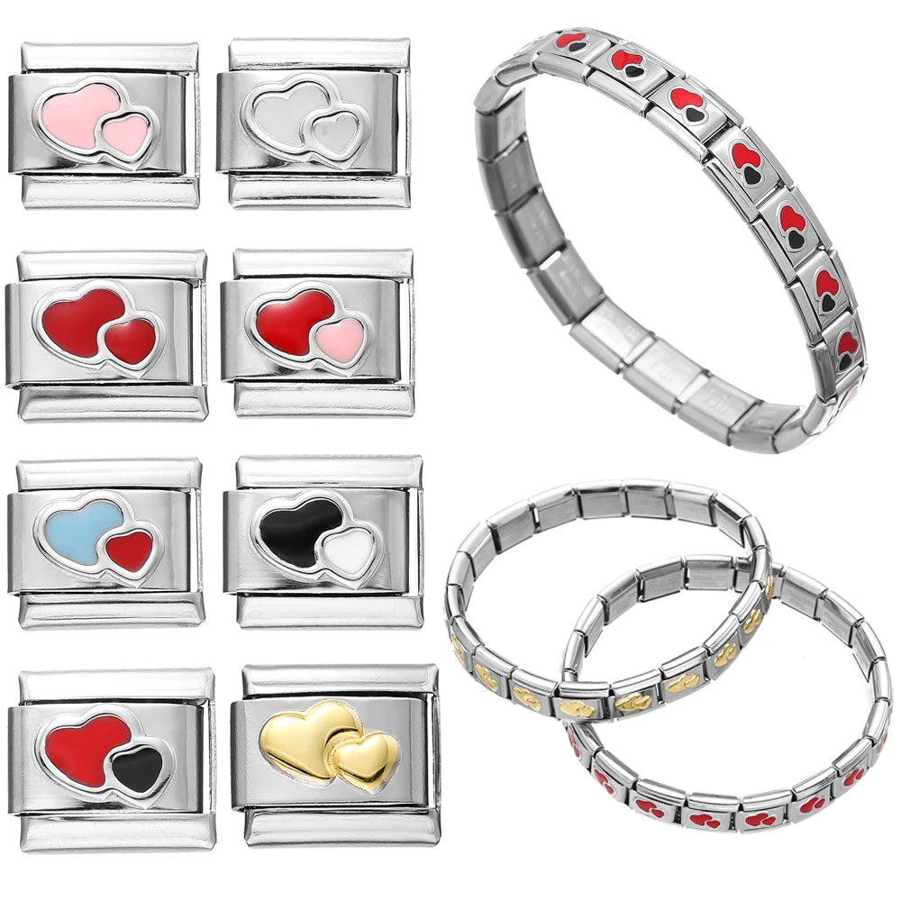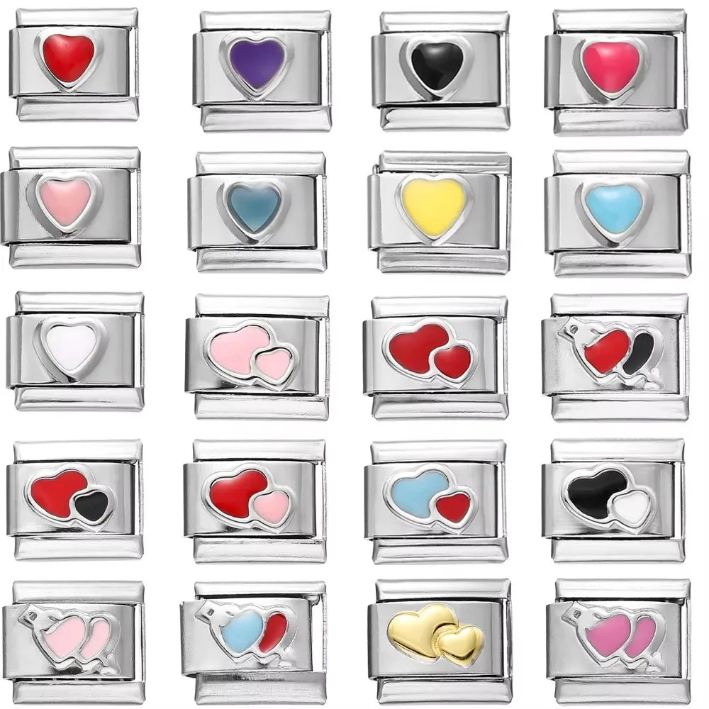 1Piece Stainless Steel Women Romantic Colour Heart Shiny Italian Charm Links Fit 9mm Bracelet for DIY Jewelry Making Accessories