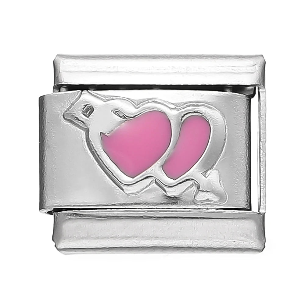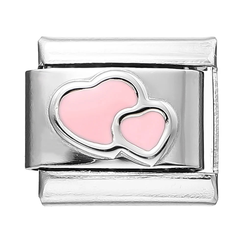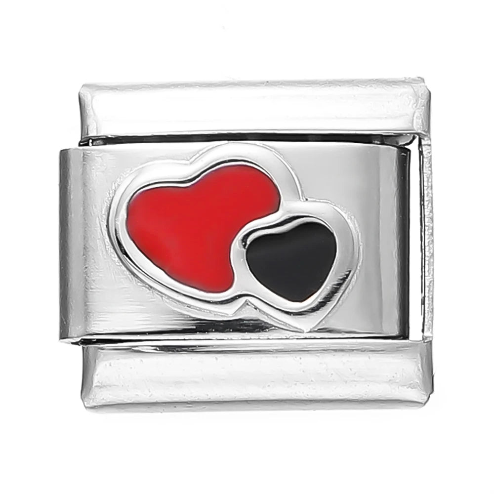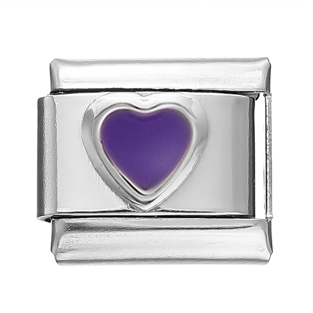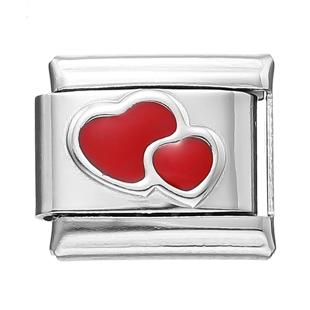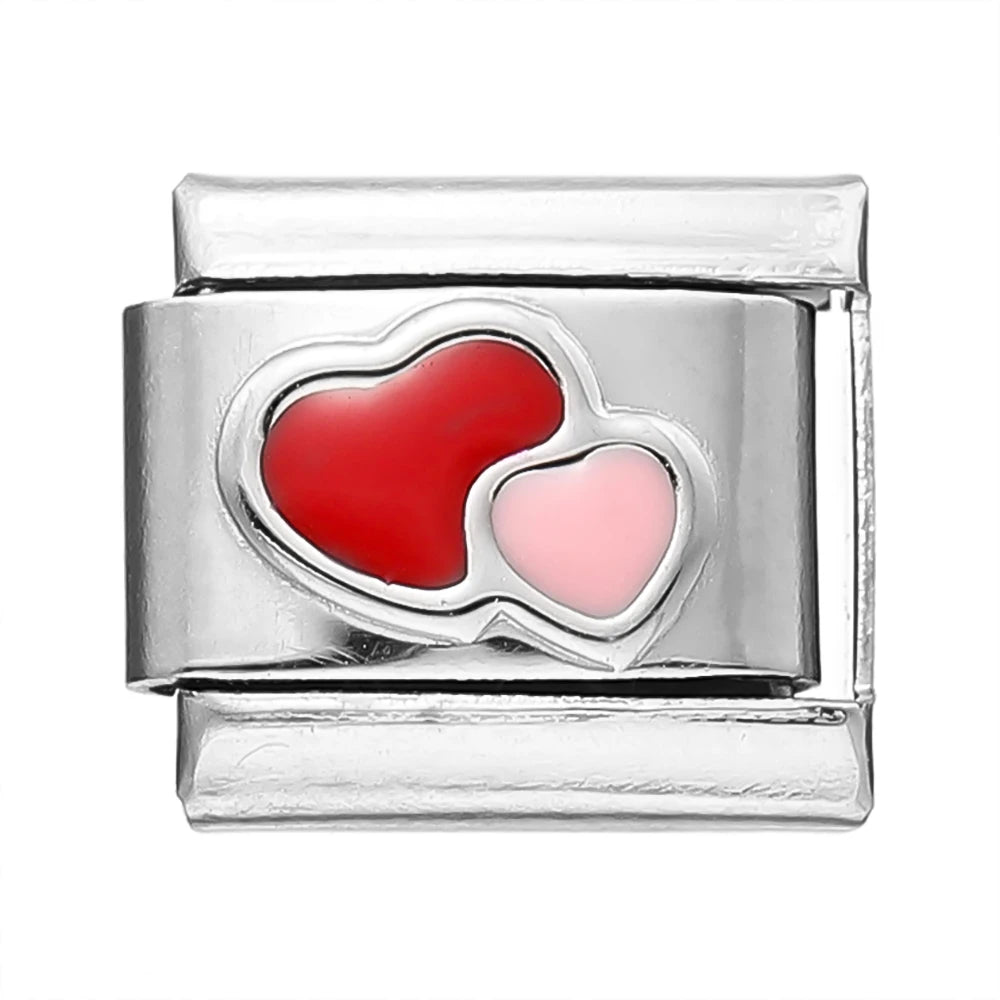 1Piece Stainless Steel Women Romantic Colour Heart Shiny Italian Charm Links Fit 9mm Bracelet for DIY Jewelry Making Accessories
