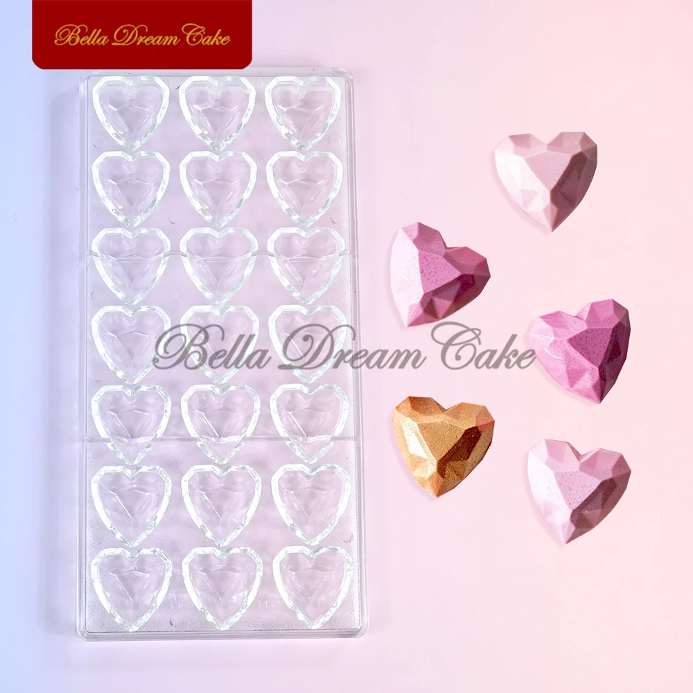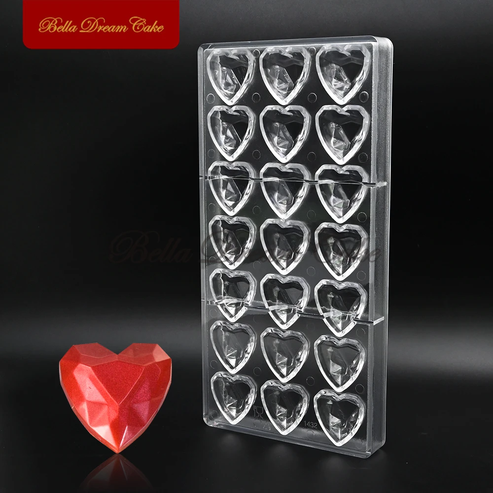 21 Cavity Diamond Heart Polycarbonate Chocolate Mold DIY Bonbons Candy Dessert Mousse Mould Valentine's Day Cake Decorating Tool