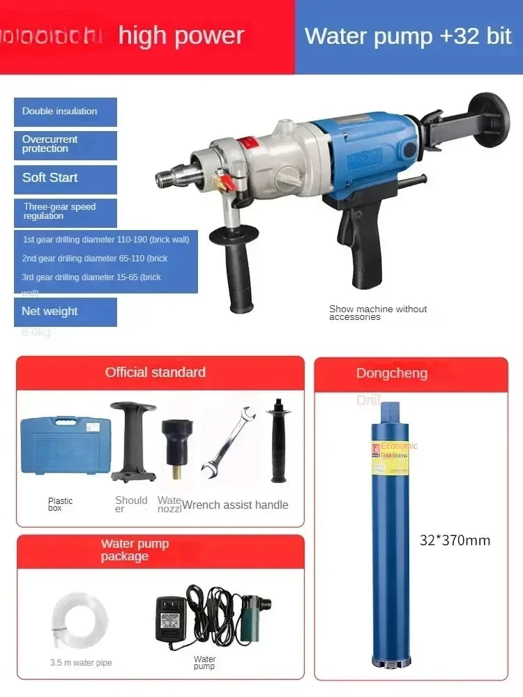220V Concrete Core Drill Bit for Air Conditioner Hole, Electric Hole Opener with Diamond Drill