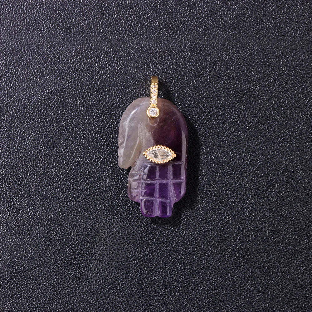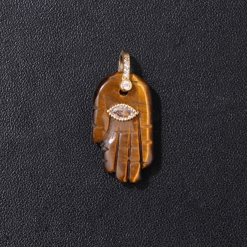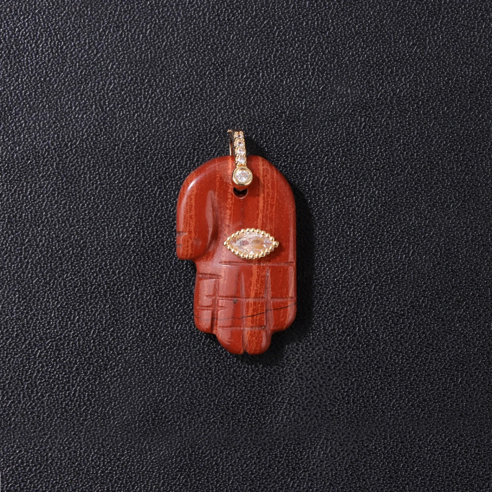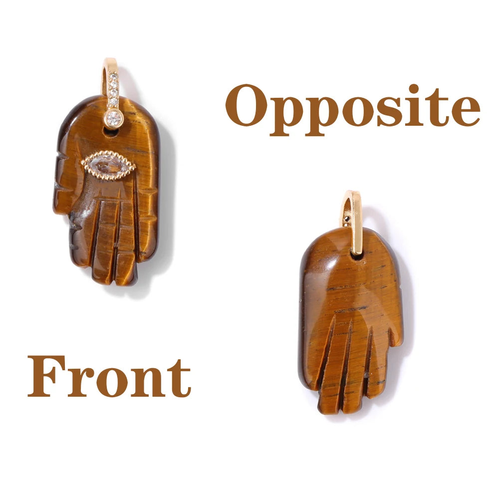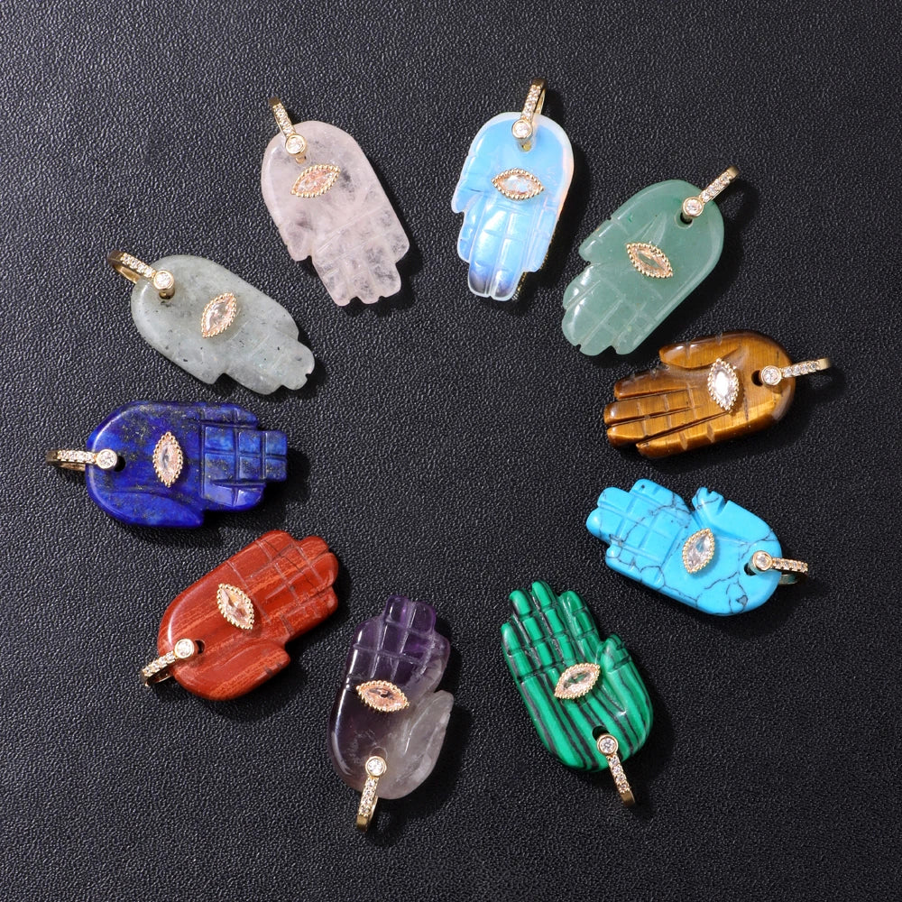 2pcs Quality Natural Stone Quartz Hamsa Fatima Hand Pendant Charm For Diy Jewelry Making Necklace Earring Accessories Wholesale