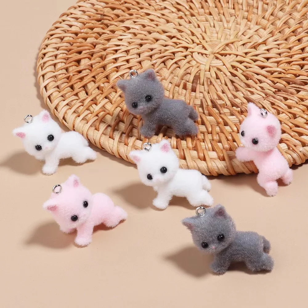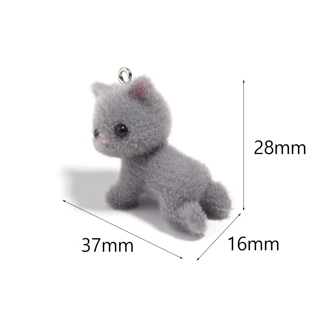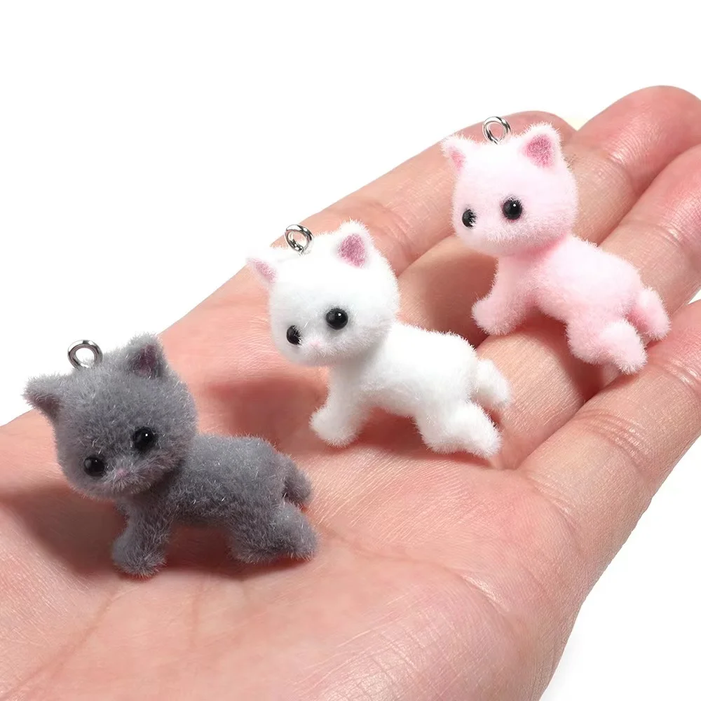 30Pcs/lot 3D Fluffy Flocking Animal crawl Cat Pendant for Jewelry Making Diy Earrings Keychain Necklace Accessories