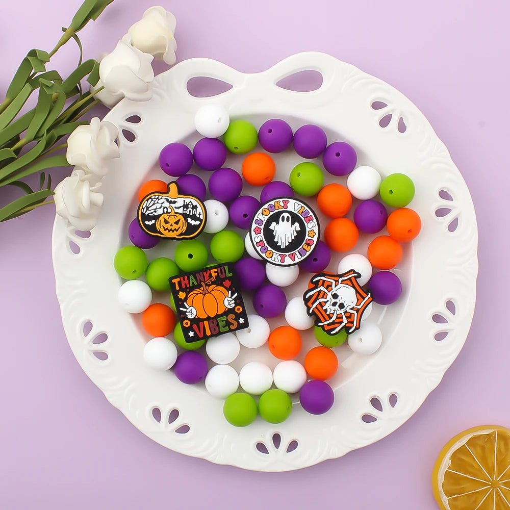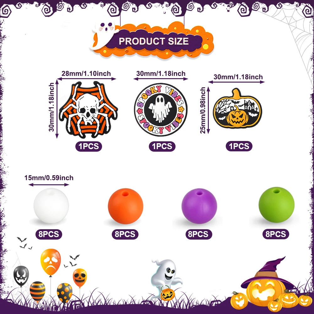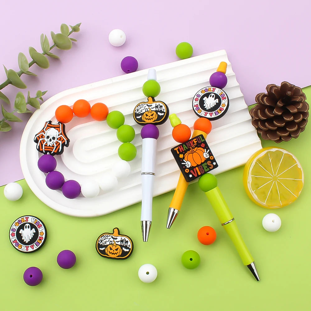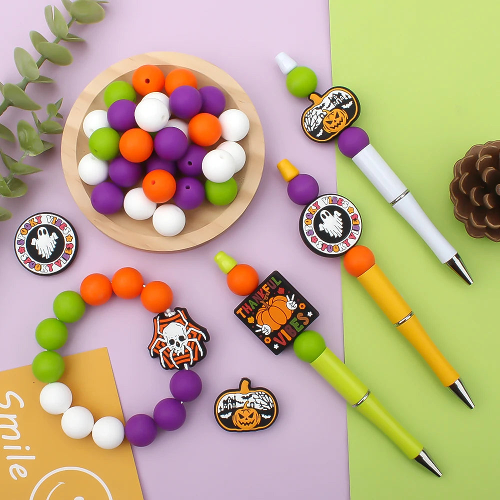 35Pcs New Silicone Beads Halloween Theme Beads Set For Jewelry Making DIY Beaded Pen Bracelets Jewelry Accessories Wholesale