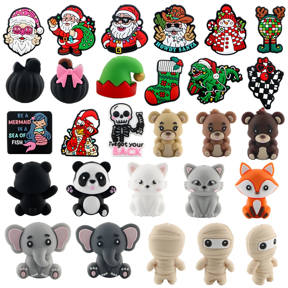5/10pcs New Christmas Cartoon Animals Silicone Focal Beads For Making DIY Keychain Bracelet Pen Accessory Etc Handmade Products