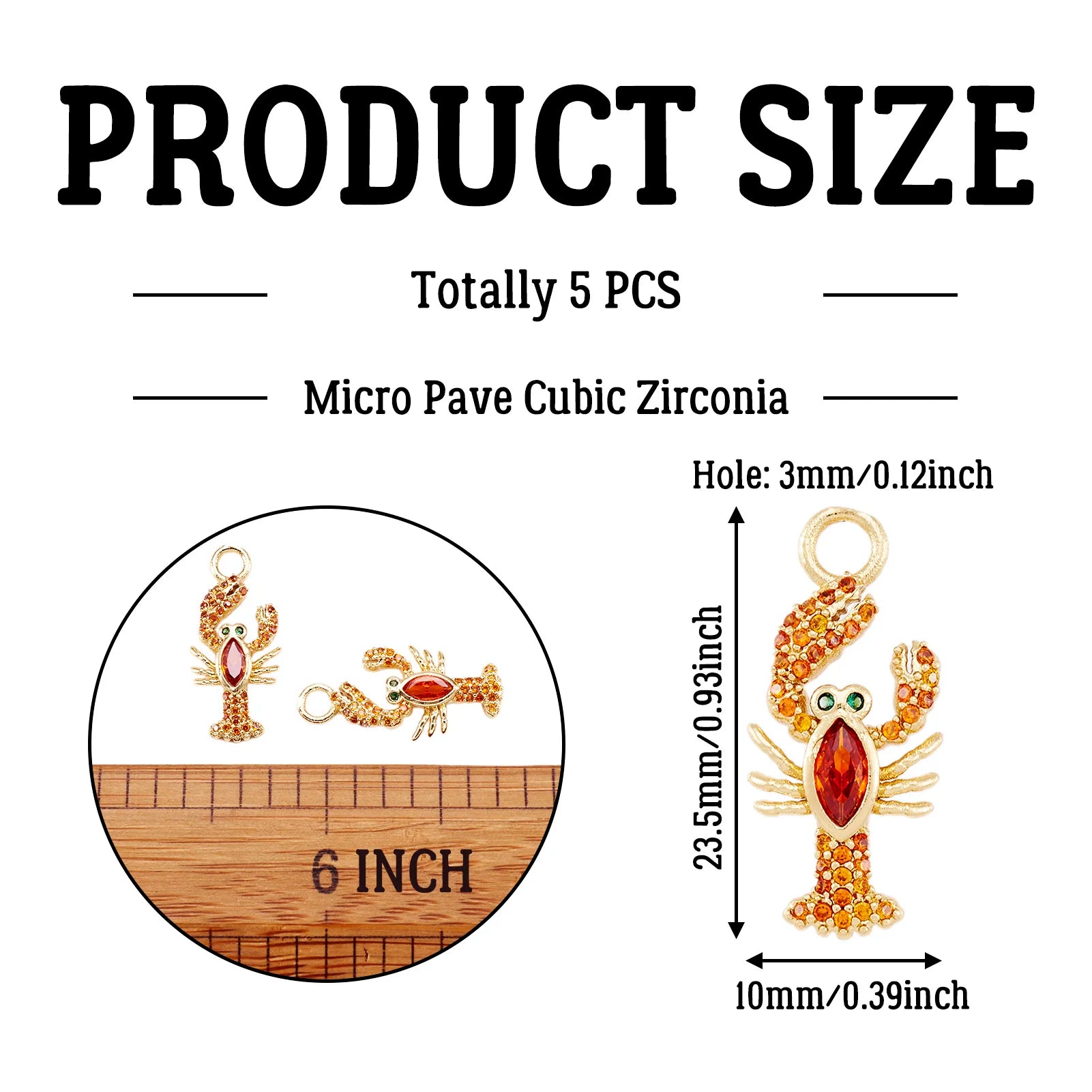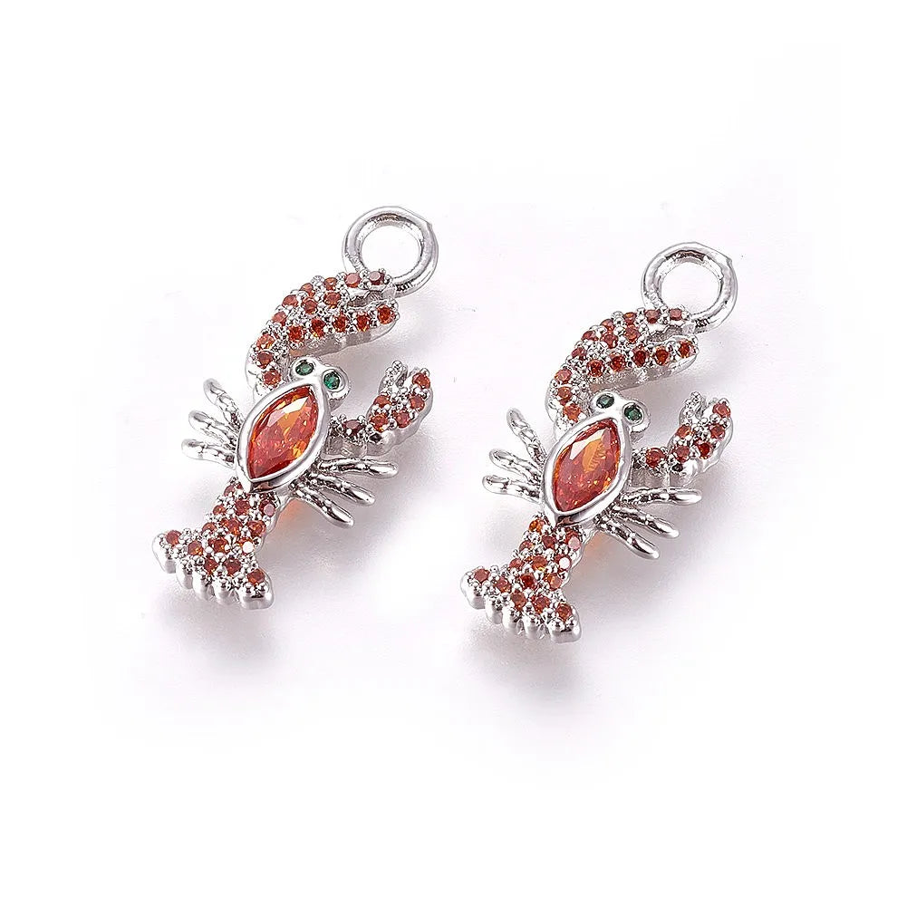 5pcs Metal Micro Pave Cubic Zirconia Pendants Lobster Orange Red Golden Color for Making DIY Jewelry Necklace Bracelet Earring