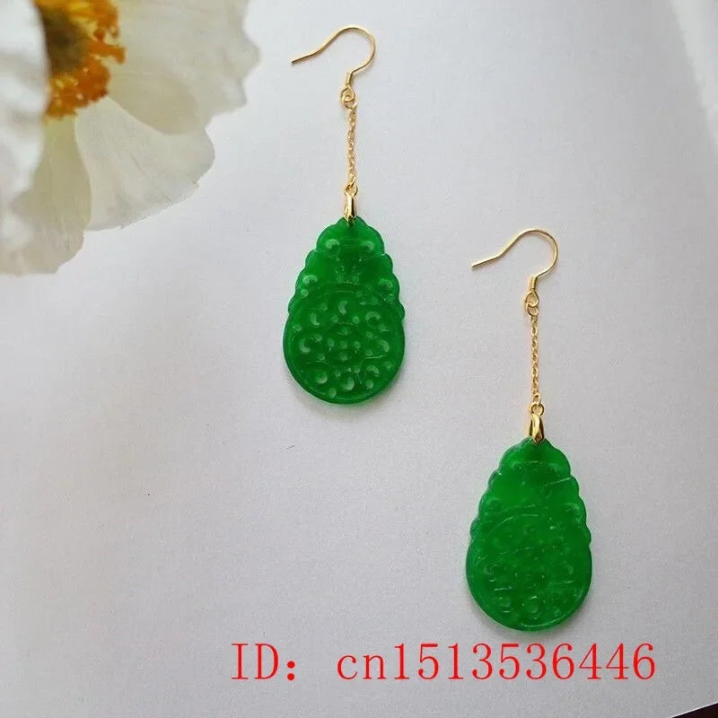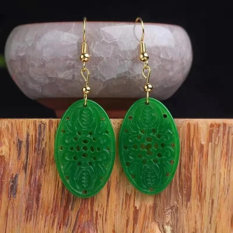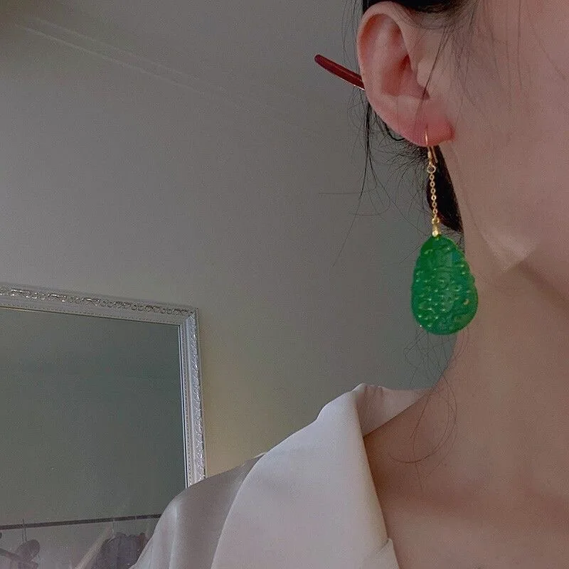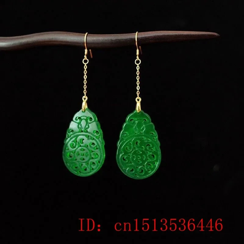 925 Silver Natural Green Jade Hollow out DIY Earrings Charm Jewellery Fashion Accessories Hand-Carved Woman Luck Amulet Gifts