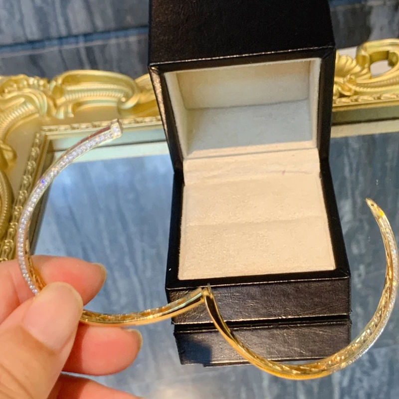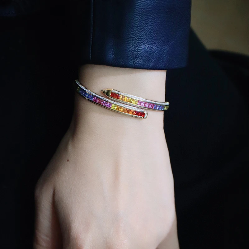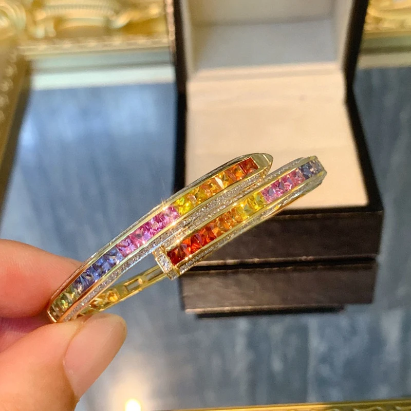 Aazuo Original Design 18K Yellow Gold Natrual Color Sapphire Real Diamonds Line Bangle For Woman Upscale Trendy Engagement Party
