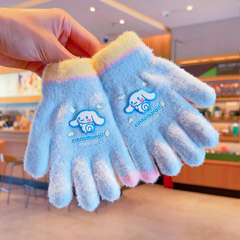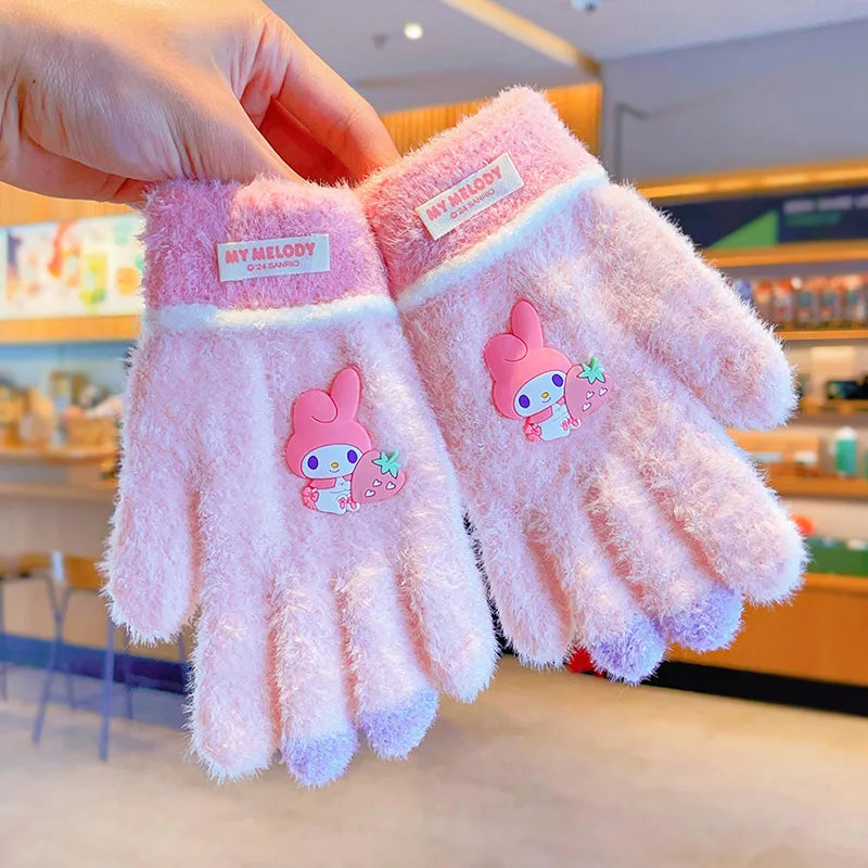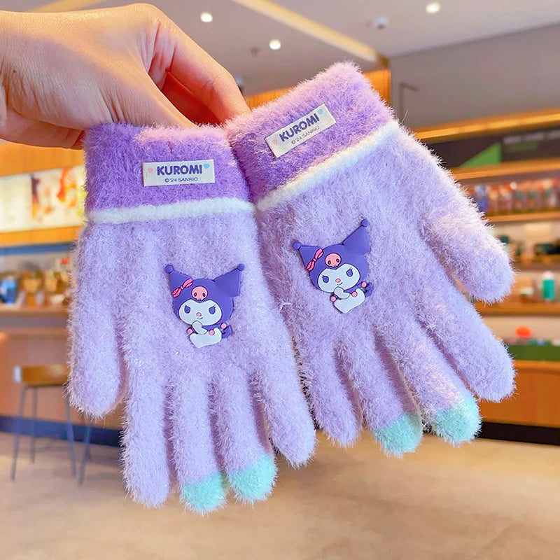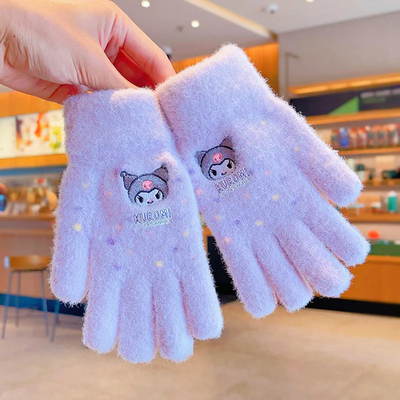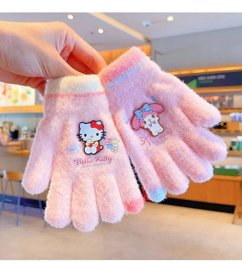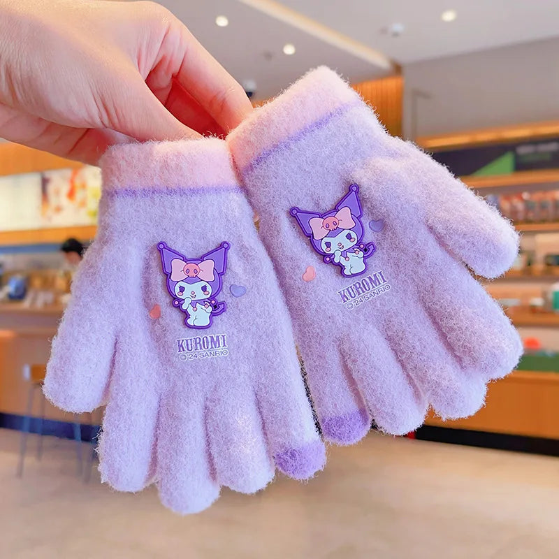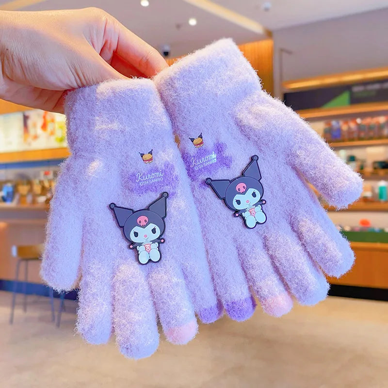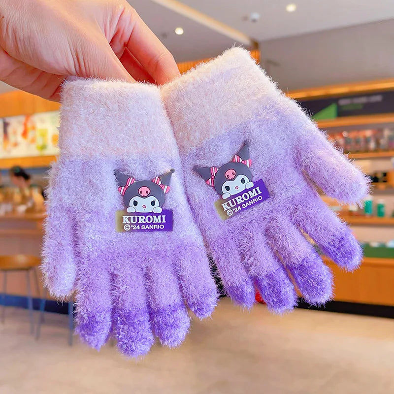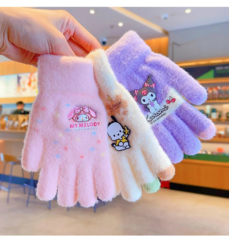 Cartoon Kuromis Children's Gloves Cold Warm and Thick Cute Mys Melodys Five-finger Outdoor Baby Plush Knit Gloves Gifts