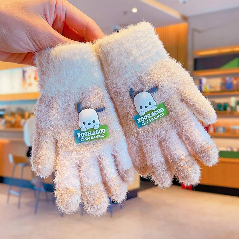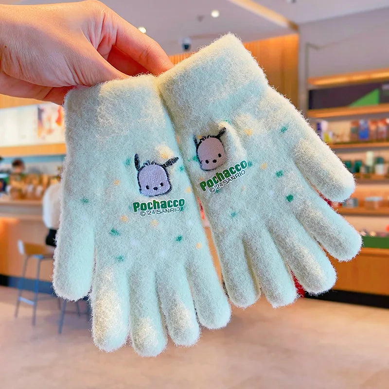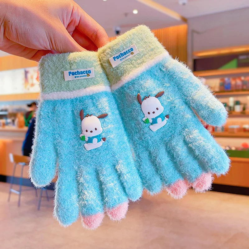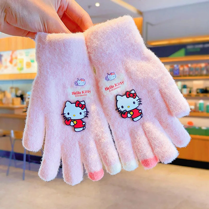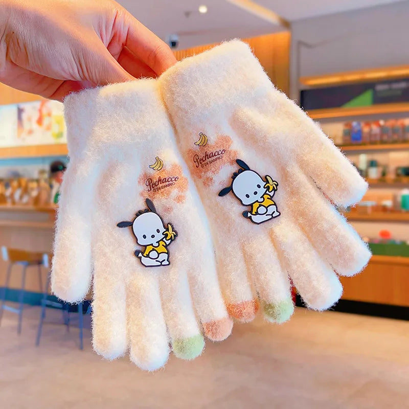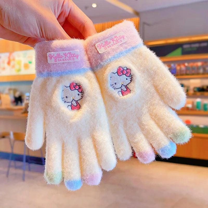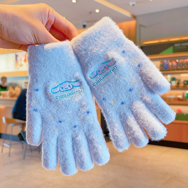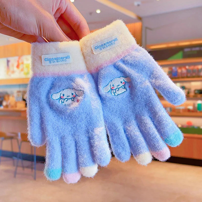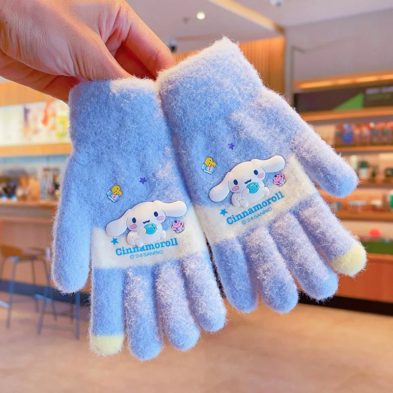 Cartoon Kuromis Children's Gloves Cold Warm and Thick Cute Mys Melodys Five-finger Outdoor Baby Plush Knit Gloves Gifts