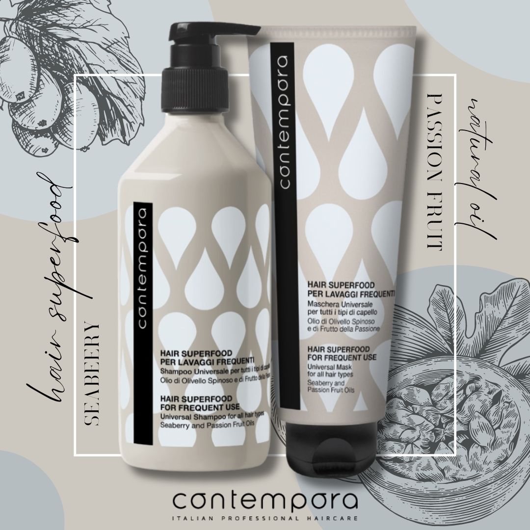 Contempora Universal Shampoo is enriched with Sea Buckthorn Oil and Passion Fruit.