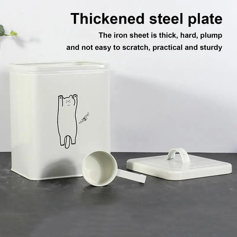 2.Reliable and Durable: The cat food storage container is rust and waterproof with a powder coating process that maintains its luster. It's built to last with thickened steel plate material, making it durable and scratch-resistant. You can rest easy knowing your cat's food is secure and protected in this durable container.