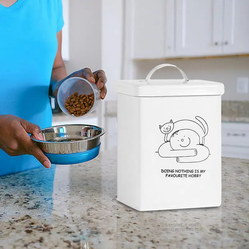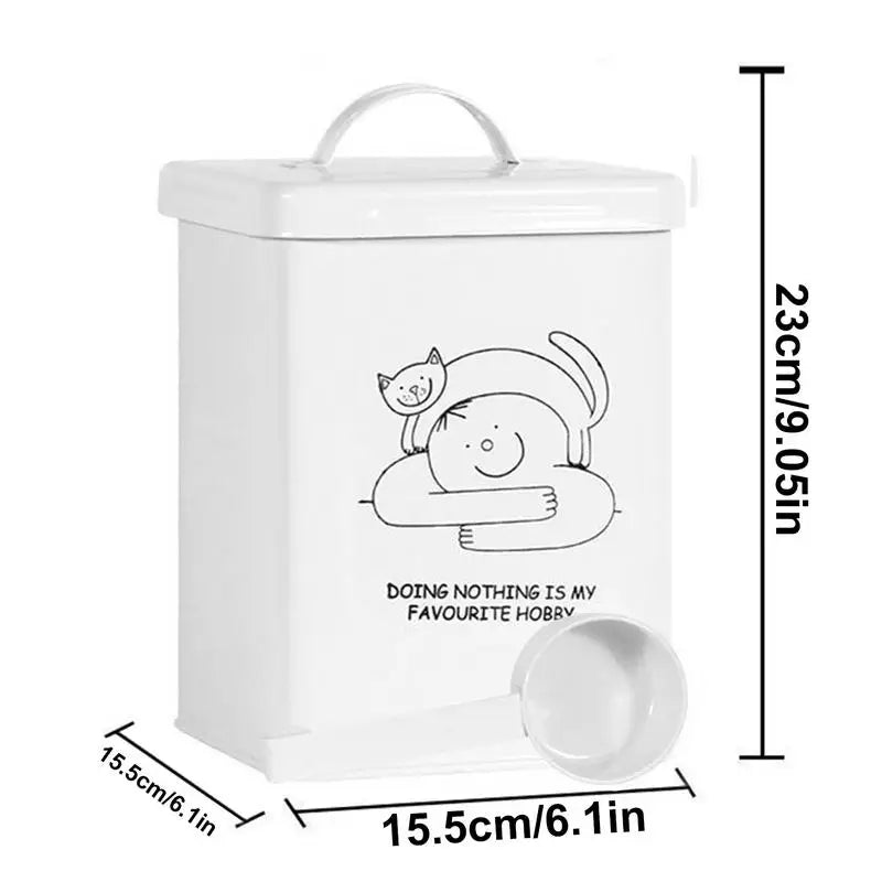 5.Charming Addition: This cat food storage container is a practical and delightful addition to your kitchen or living room. Its appealing design suits all styles, with cute patterns that add a unique touch of fun and fashion to your daily life.