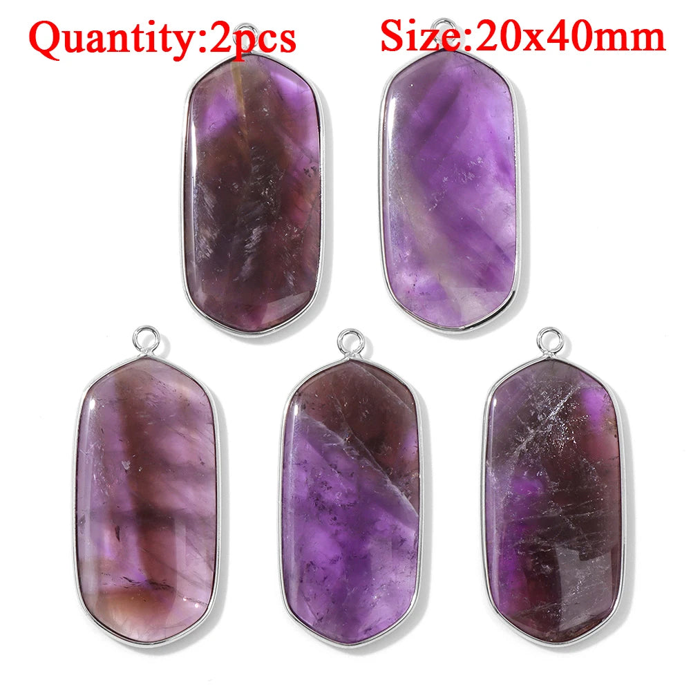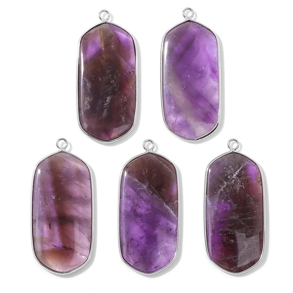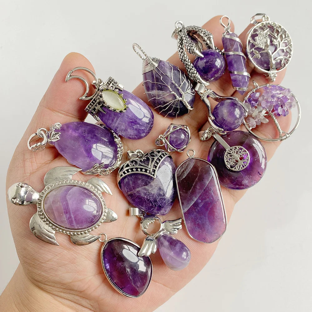 Fashion Amethyst Stone Gem Pendant Natural Purple Quartz Silver Color Charm Jewelry Accessory For Necklace Bracelet Necklace DIY
