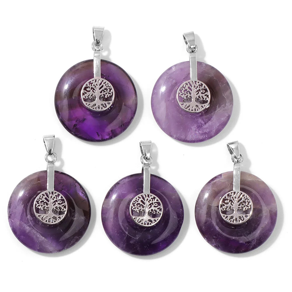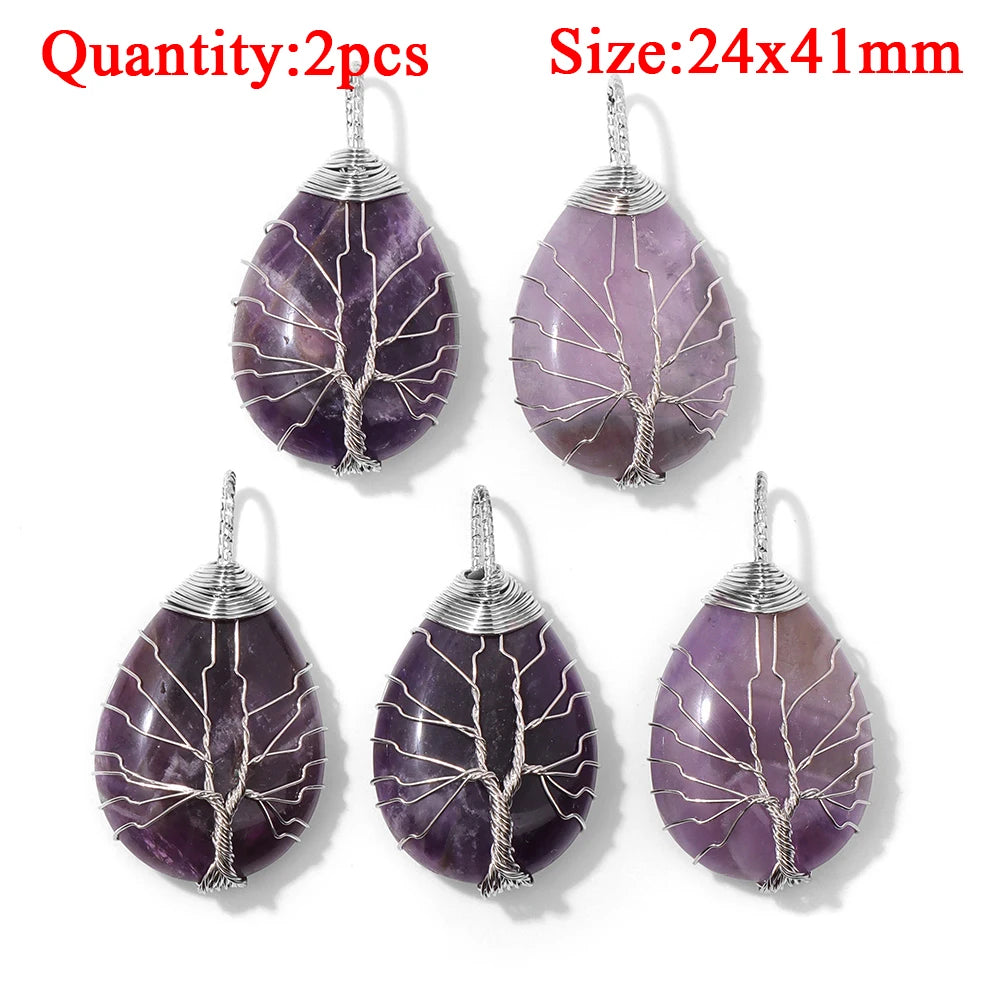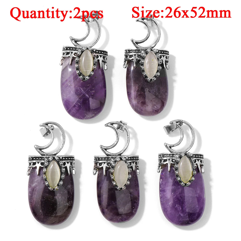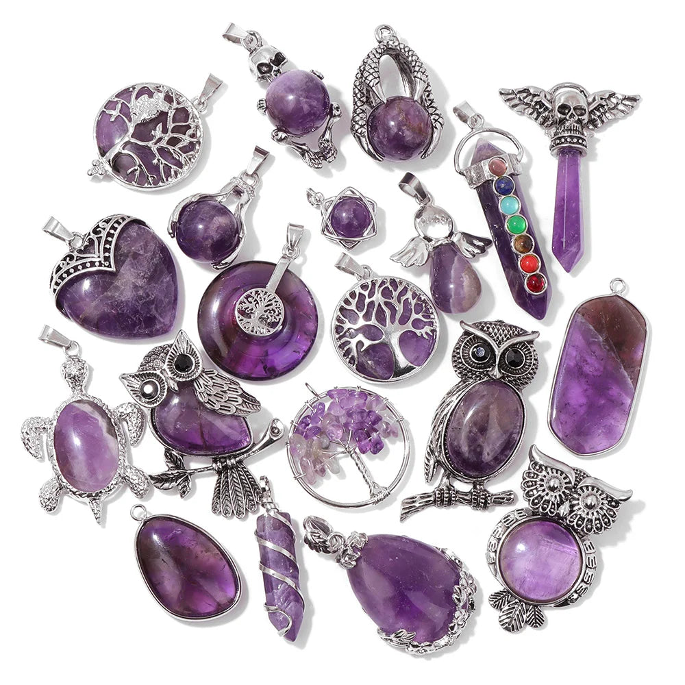 Fashion Amethyst Stone Gem Pendant Natural Purple Quartz Silver Color Charm Jewelry Accessory For Necklace Bracelet Necklace DIY